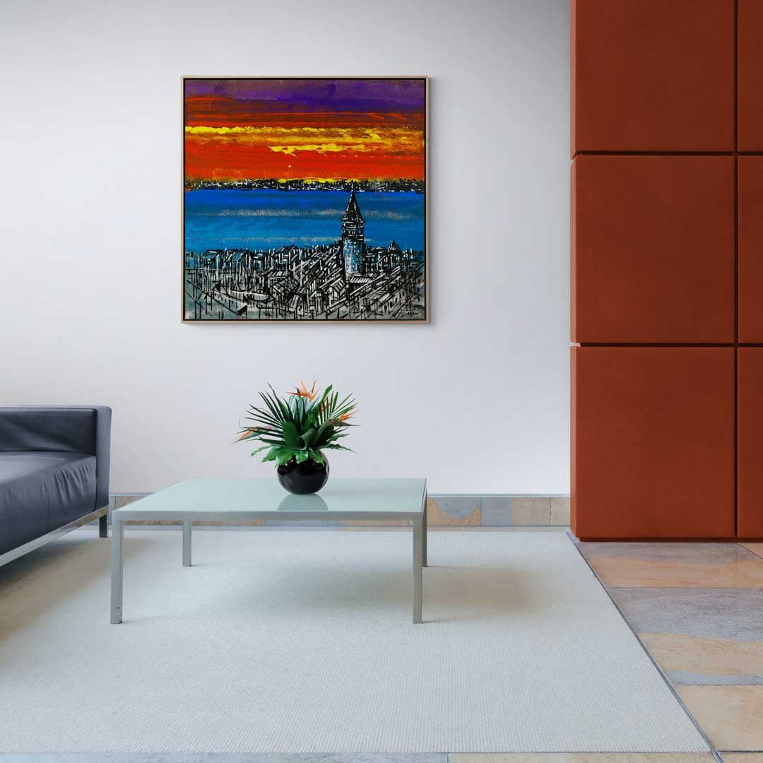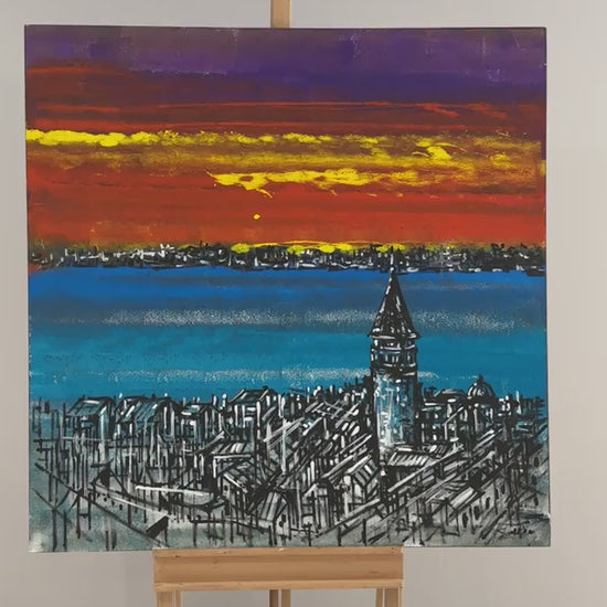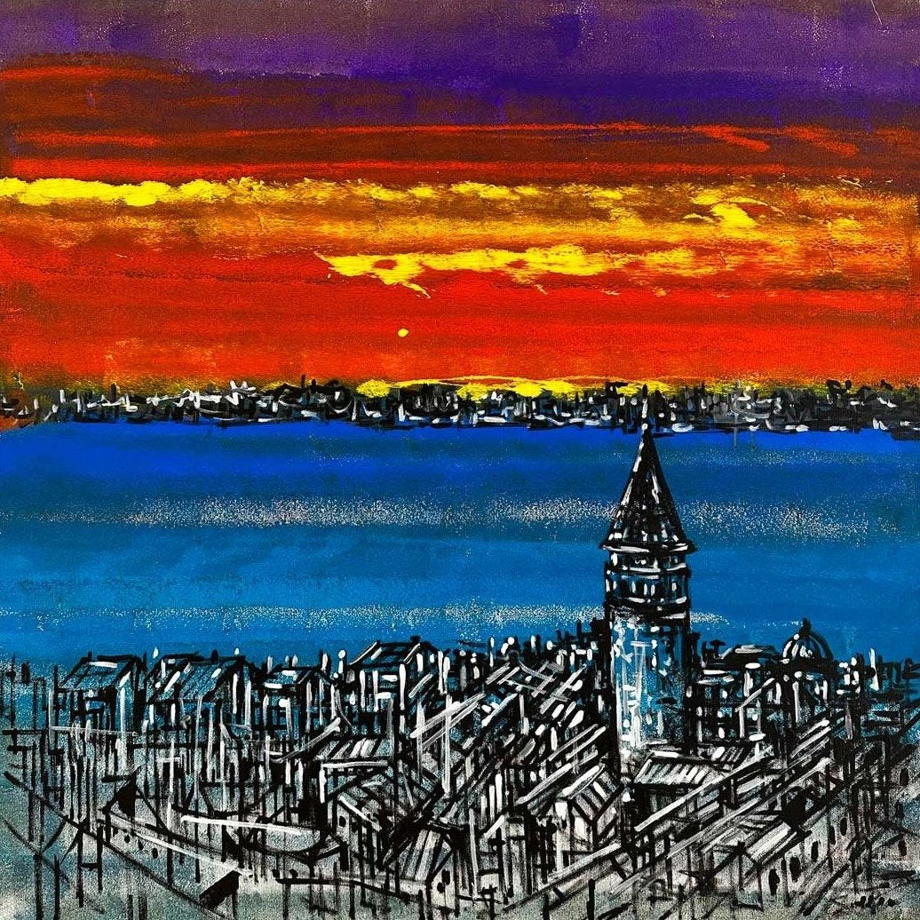 Çizgisel Işık Galata'nın Büyüsü Yağlı Boya Tablosu