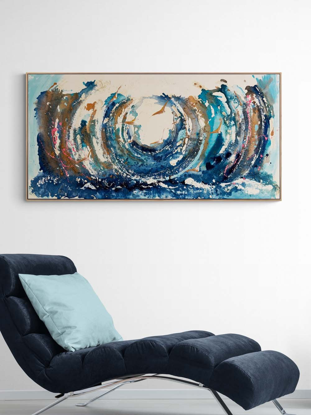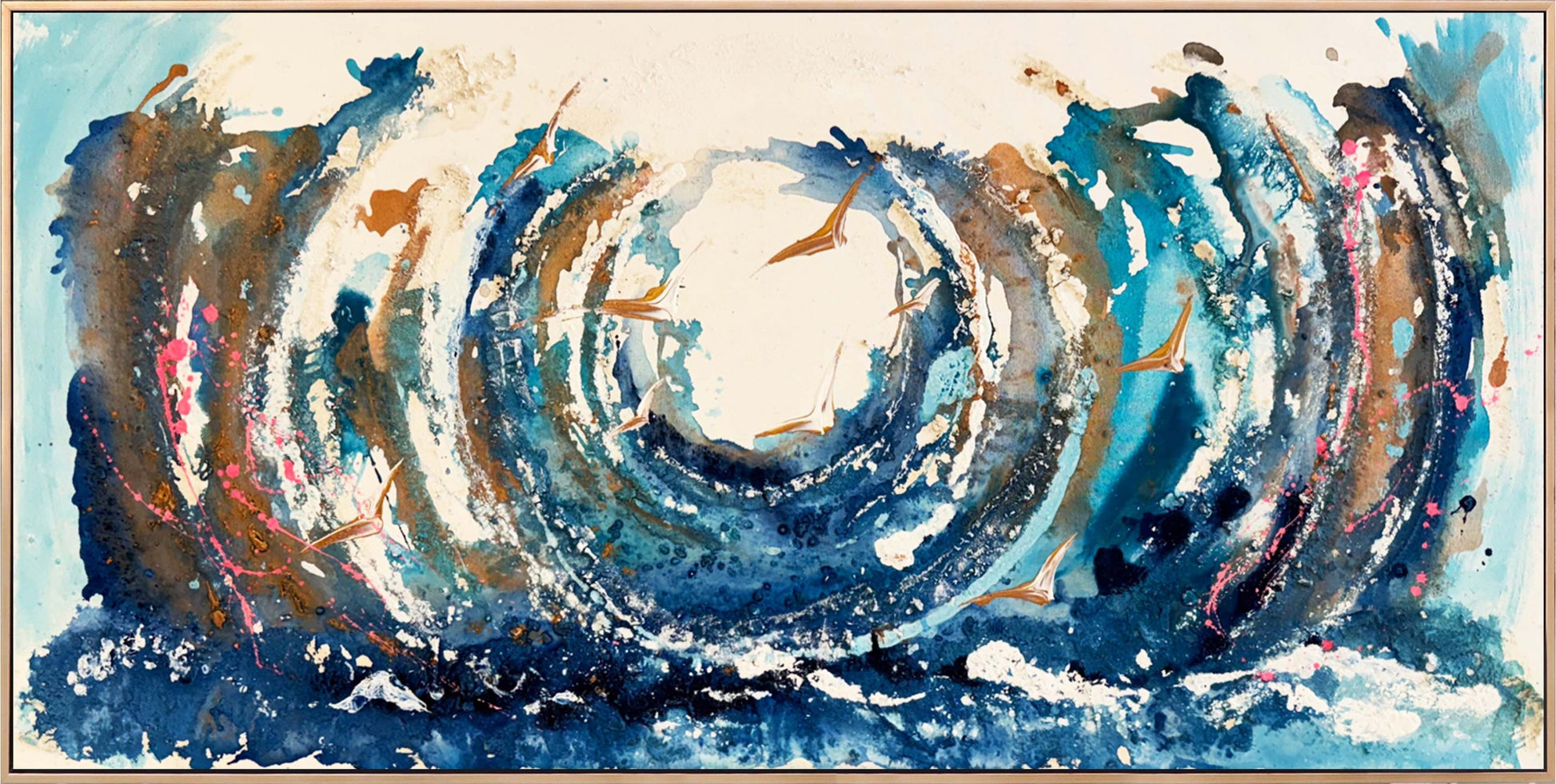 Dalgaların İçinde Kuşlar Yağlı Boya Tablosu