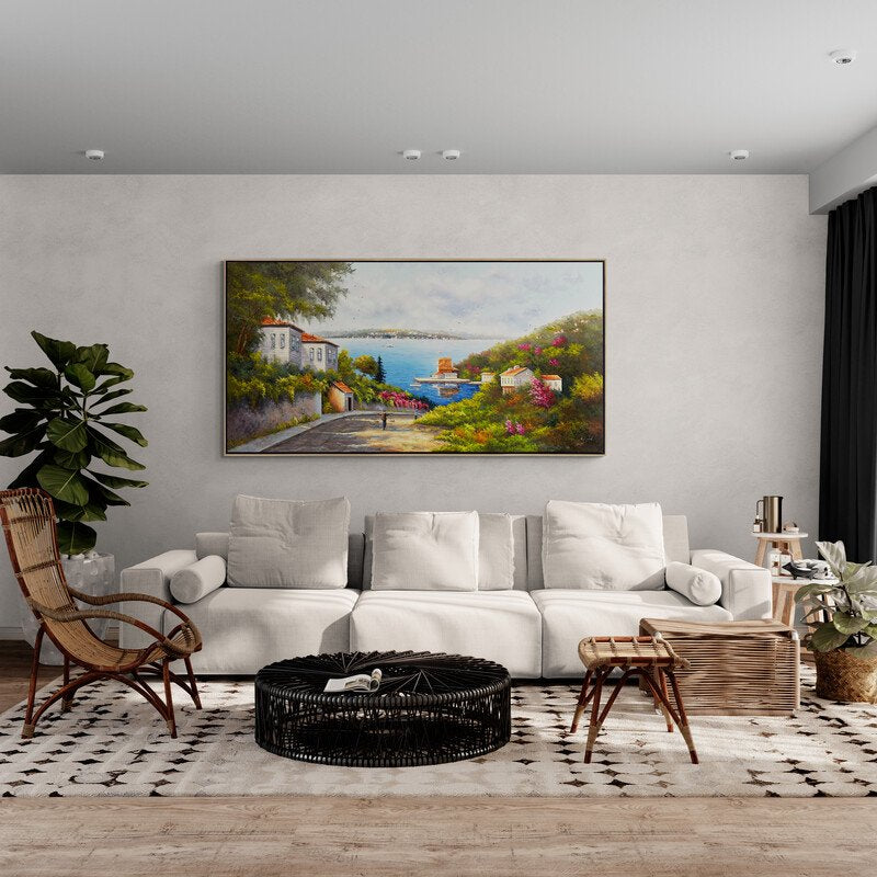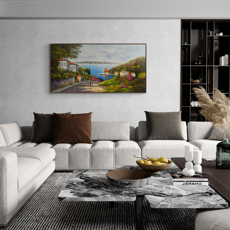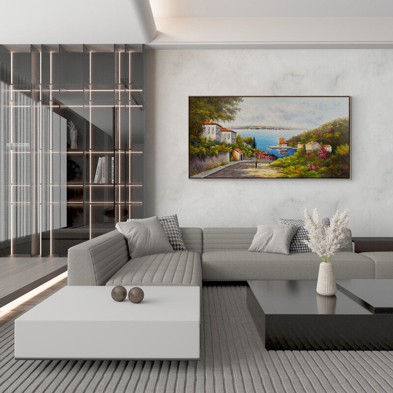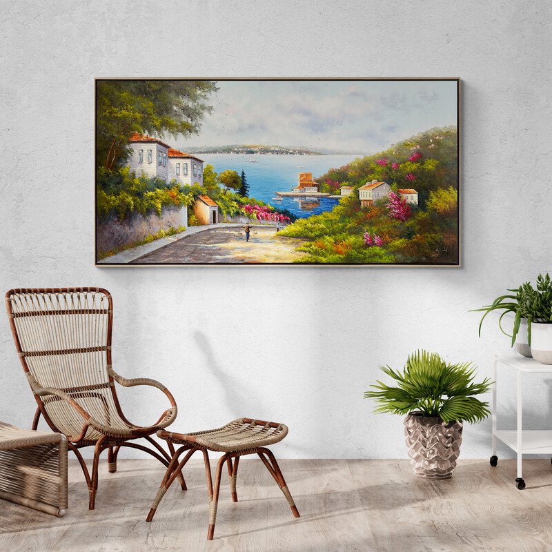 Deniz Manzaralı Cadde Yağlı Boya Tablosu