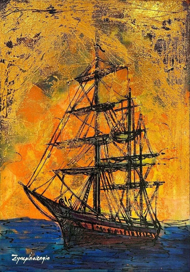 Denizde Gökkuşağı Renkleri ve Gemi Yağlı Boya Tablosu