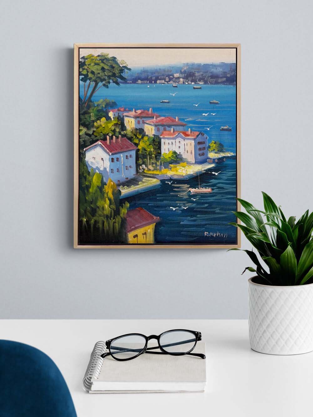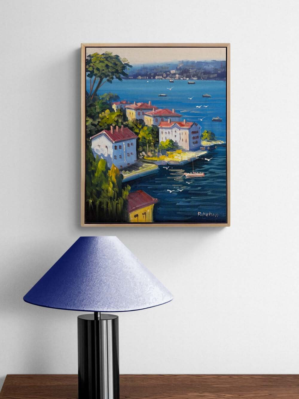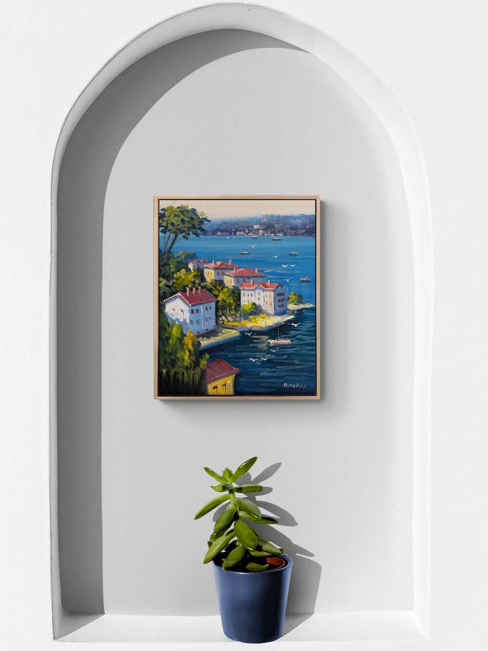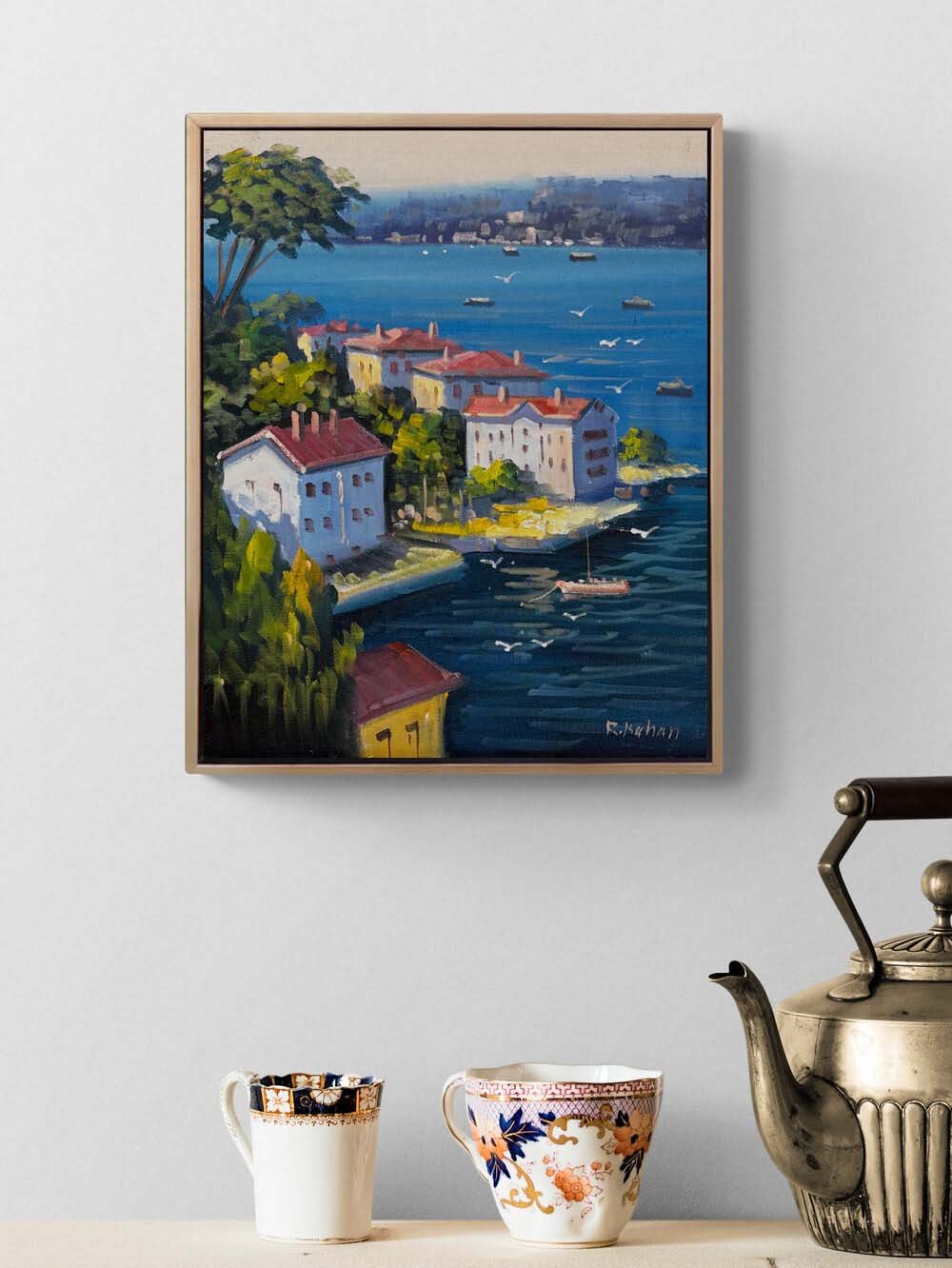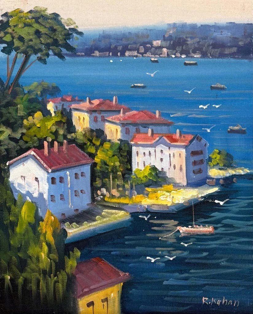 Denize Açılan Yalılar Yağlı Boya Tablosu