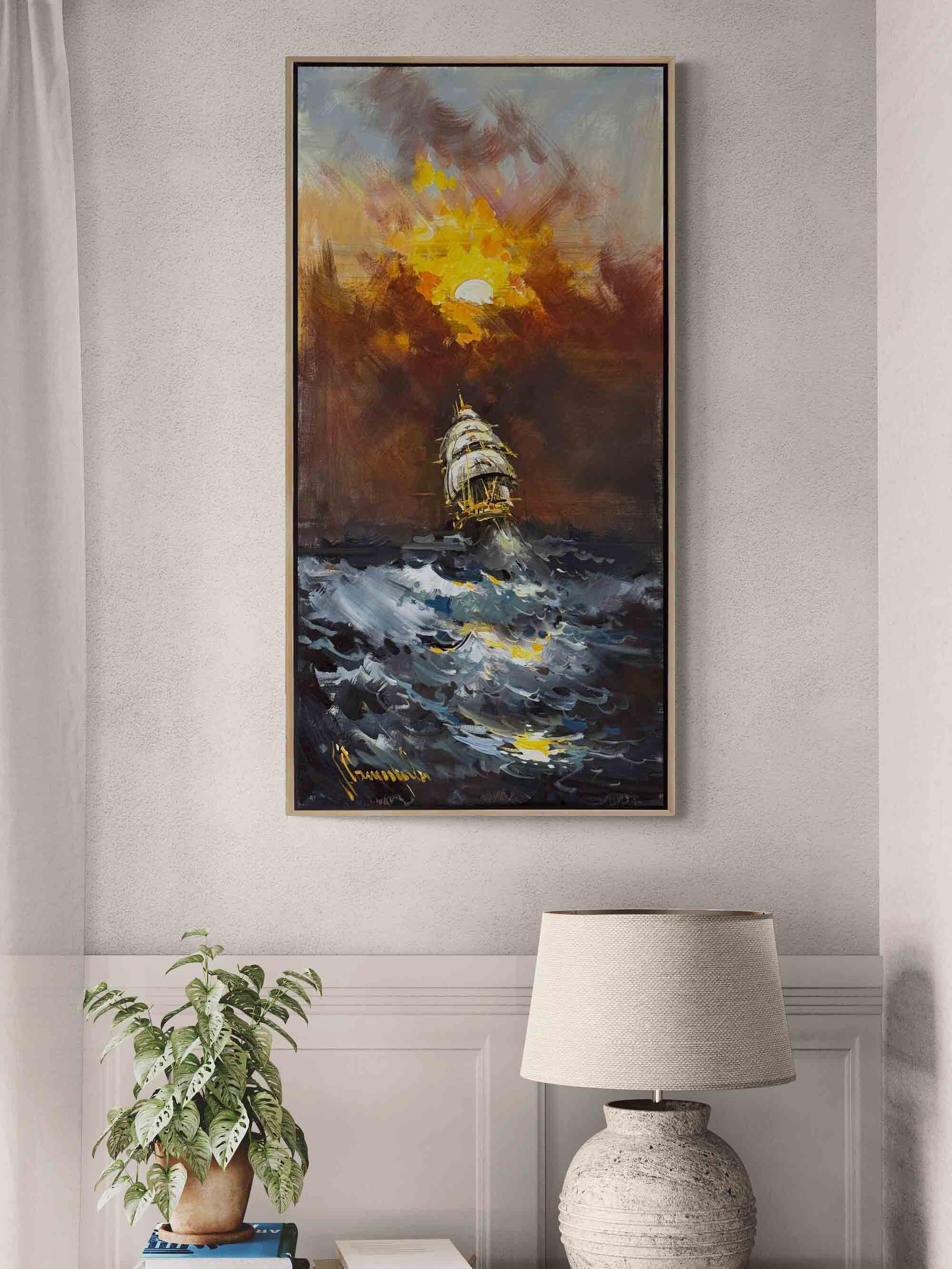 Denizin Parlayan İzleri Yağlı Boya Tablosu