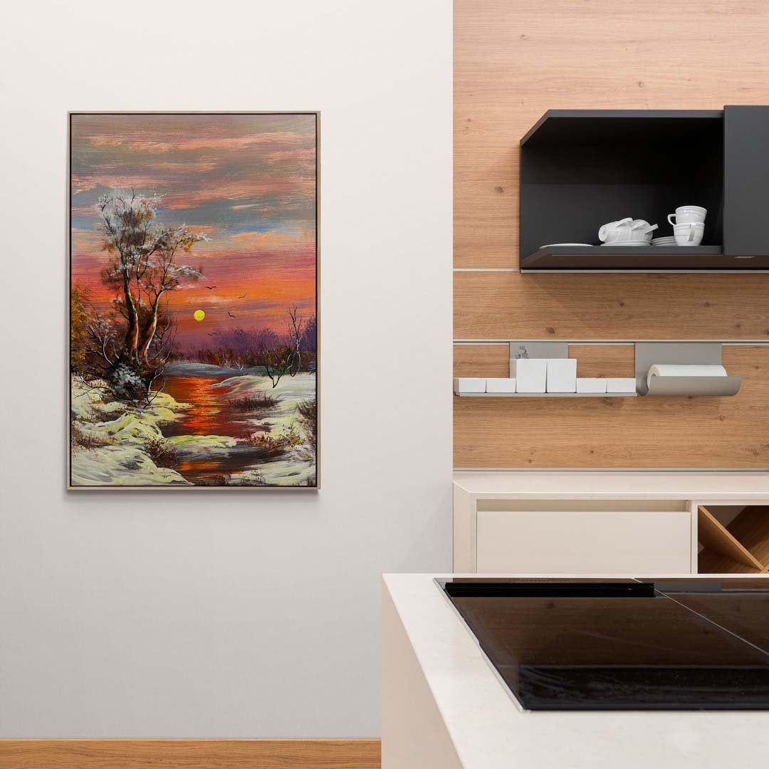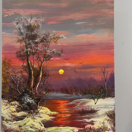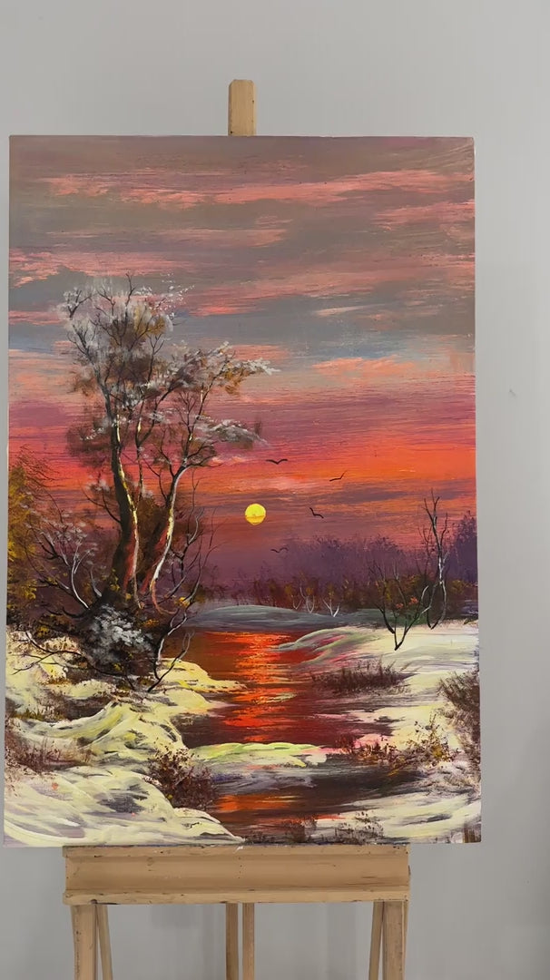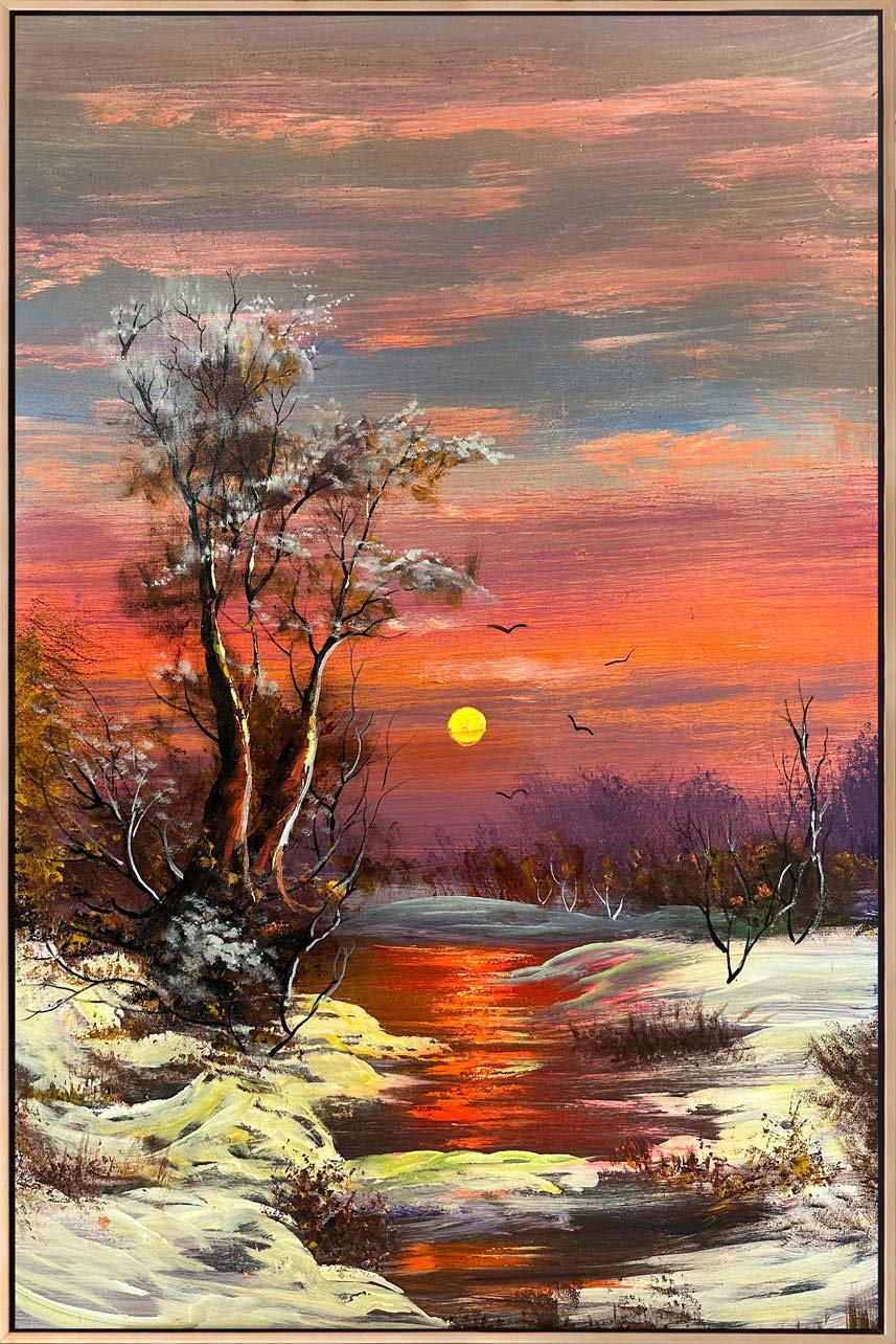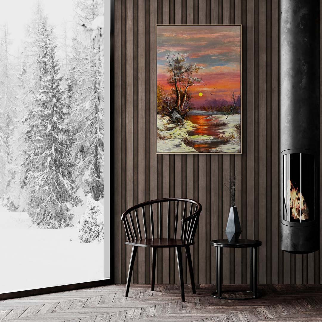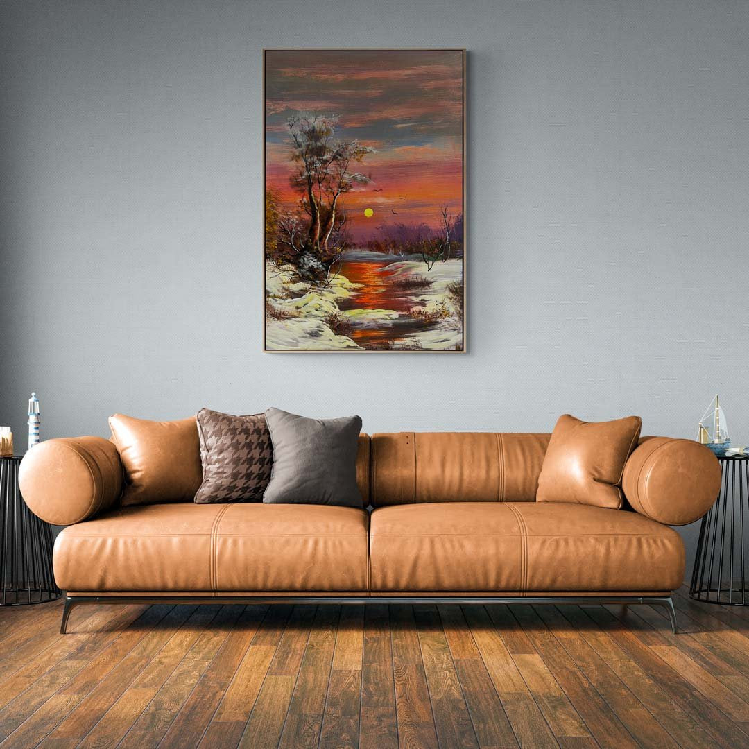 Dere Kenarında Kar Manzarası Yağlı Boya Tablosu