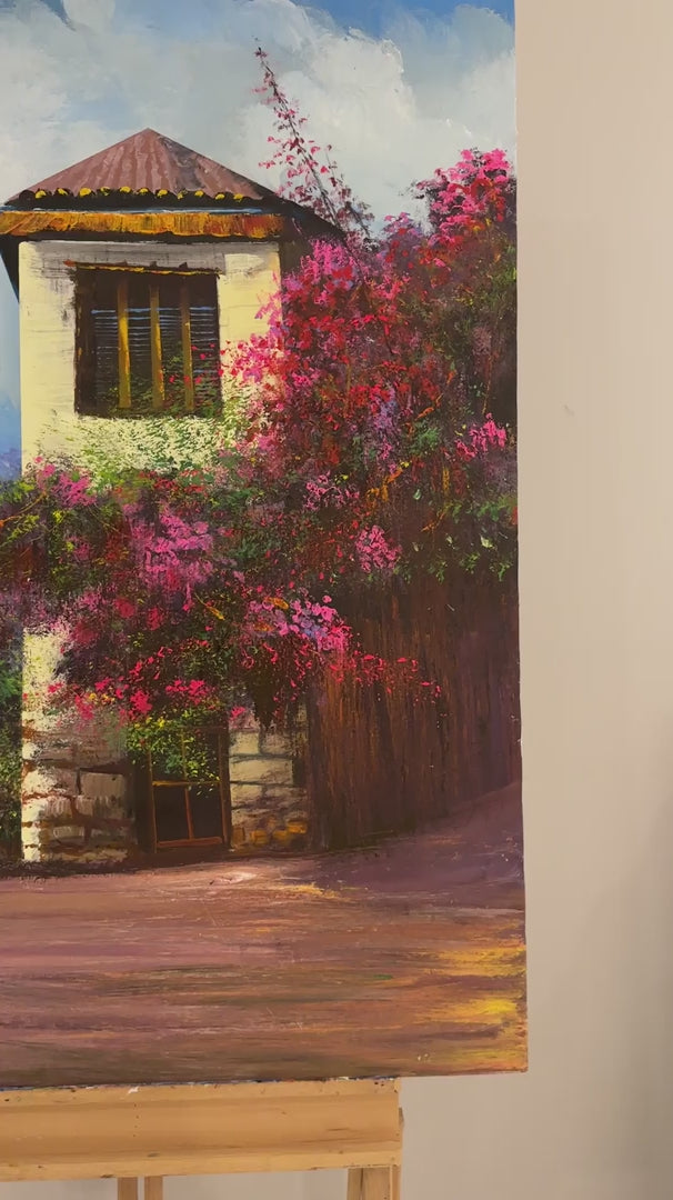 Erguvanların Arasındaki Ev Yağlı Boya Tablosu