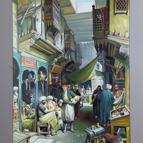 Eski İstanbul Çarşısında Yağlı Boya Tablosu