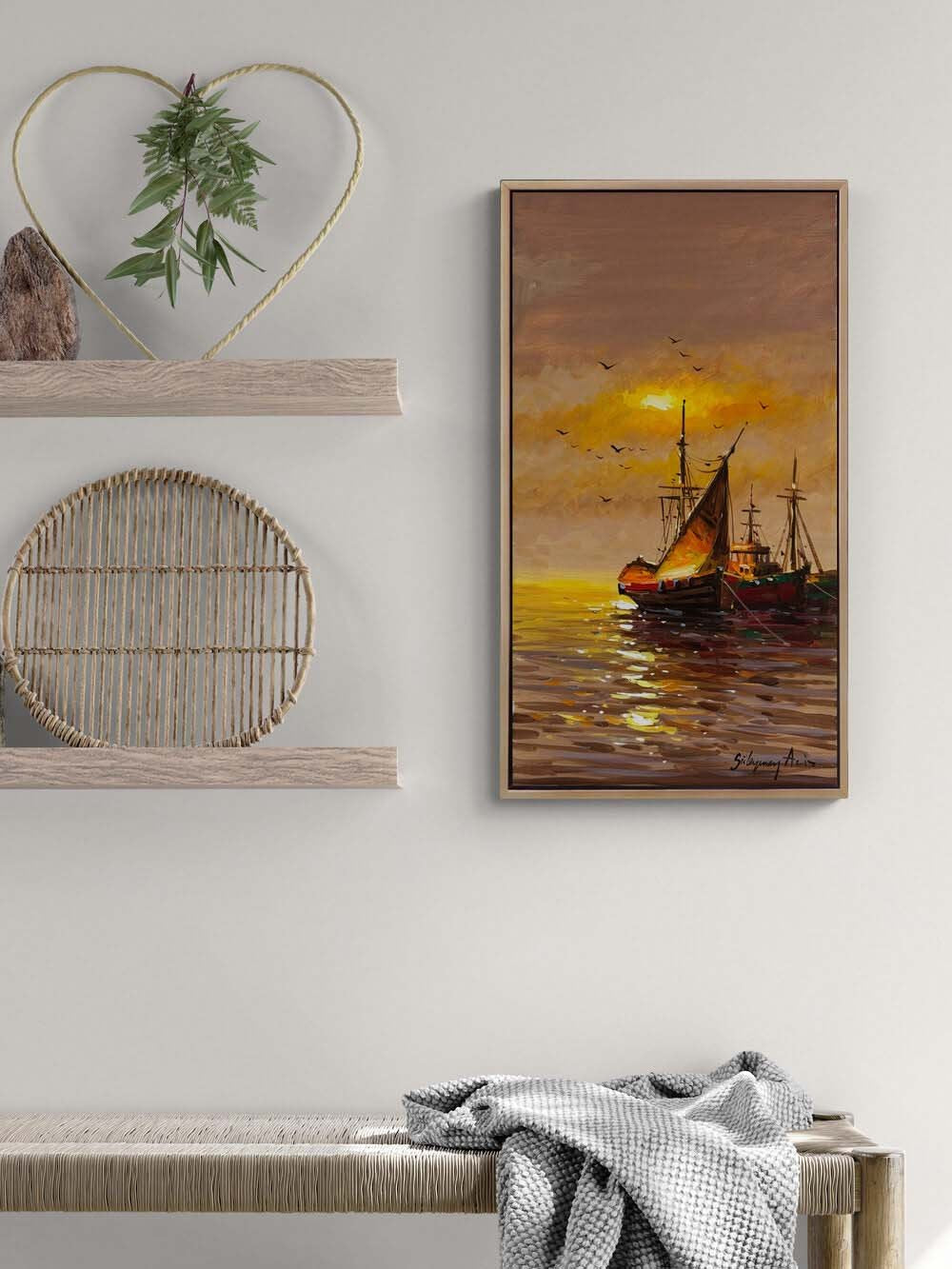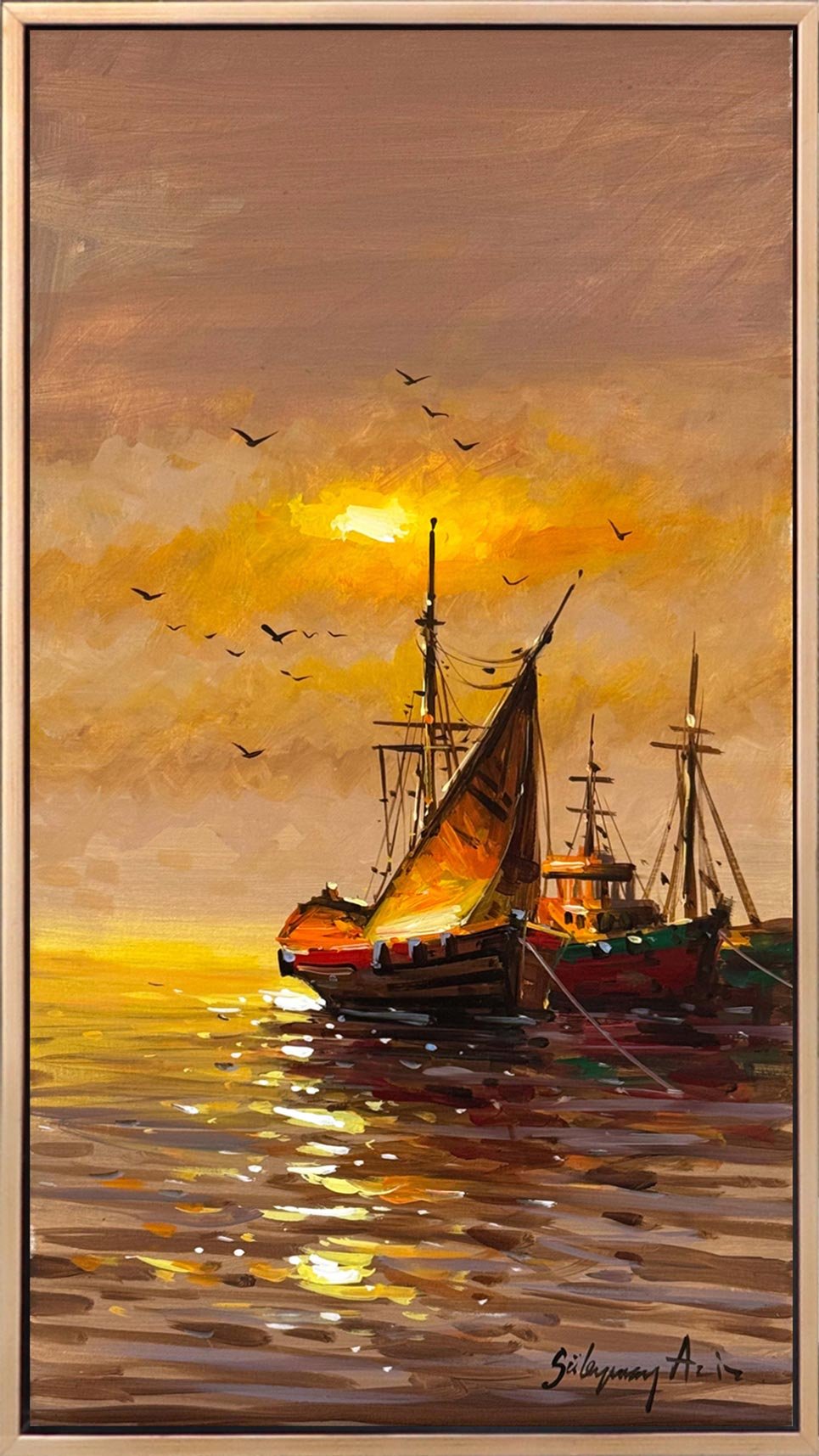 Eski İstanbul’un Tekneleri Yağlı Boya Tablosu