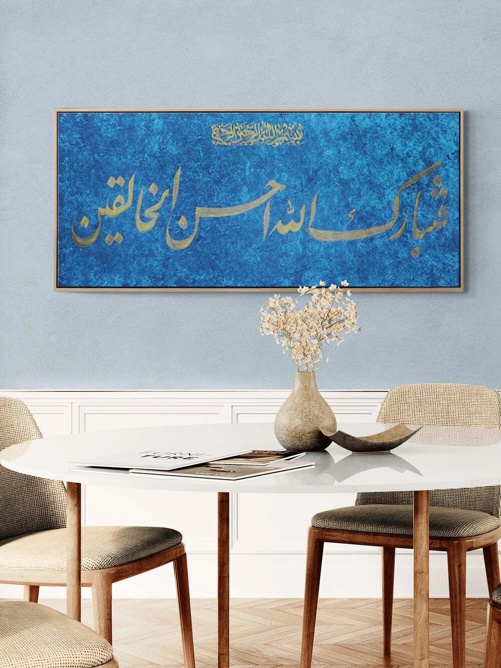 Fetebarek Allahu Ahsenü'l-Halıkîn | Yağlı Boya Hat Tablo