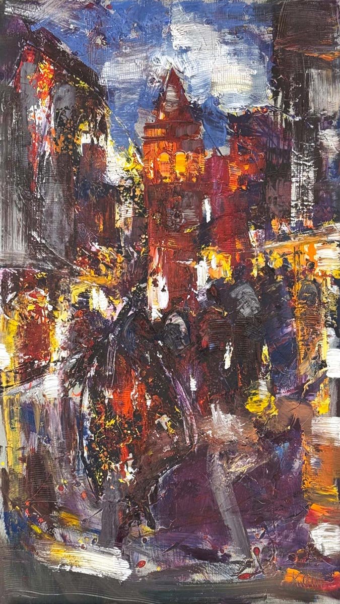 Galata'da Akşam Yansımaları Yağlı Boya Tablosu