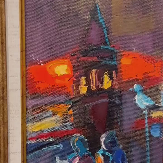 Galata Kulesi'nde Başbaşa Yağlı Boya Tablosu