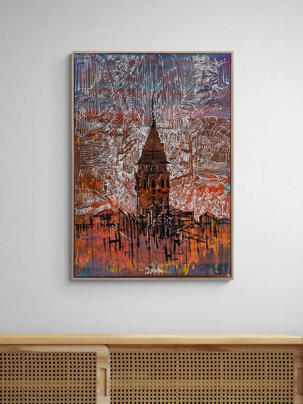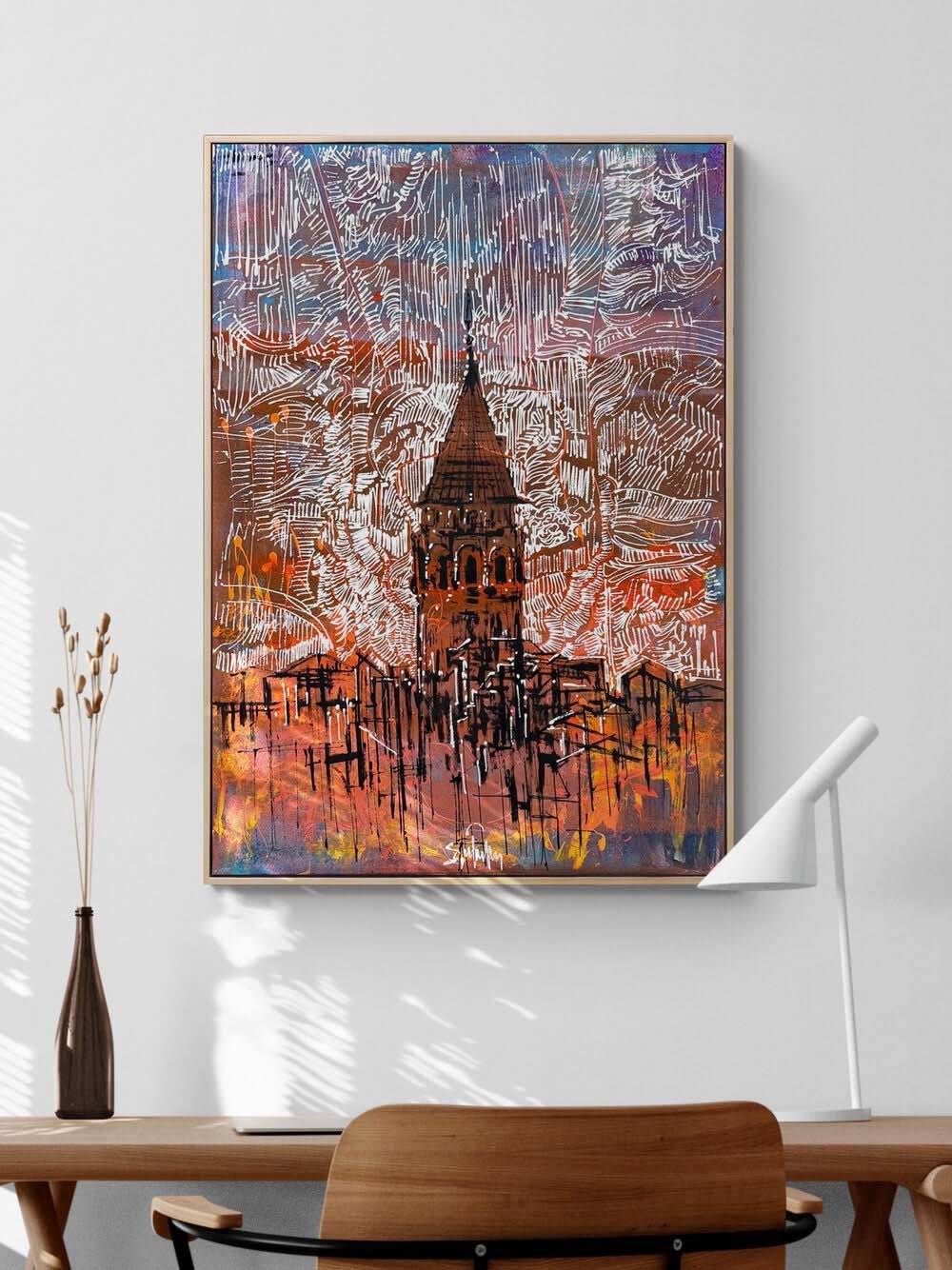 - Özel olarak üretilen 400 gr kalınlığında 1.sınıf sanatsal yağlıboya tuval üzerine çalışılır.