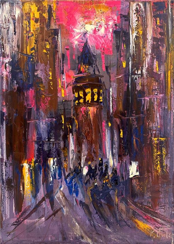 Galata Kulesi Yokuşu Yağlı Boya Tablosu