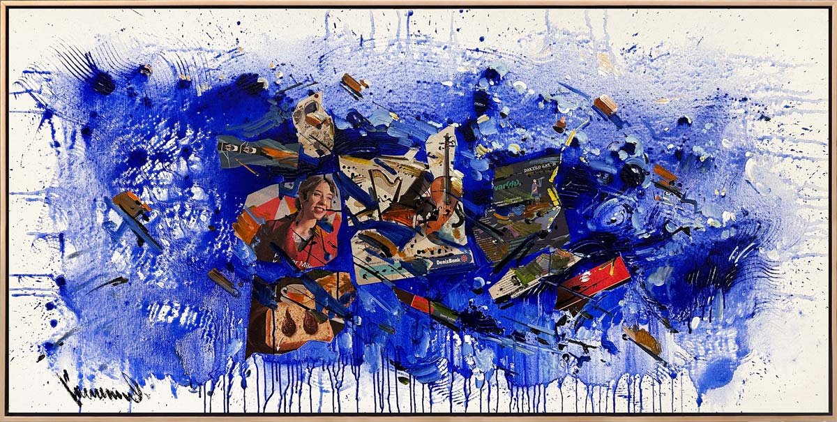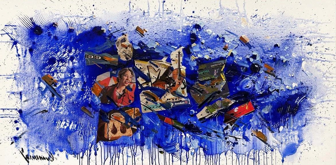 Gazete Sayfalarında Renkli İzler Yağlı Boya Tablosu