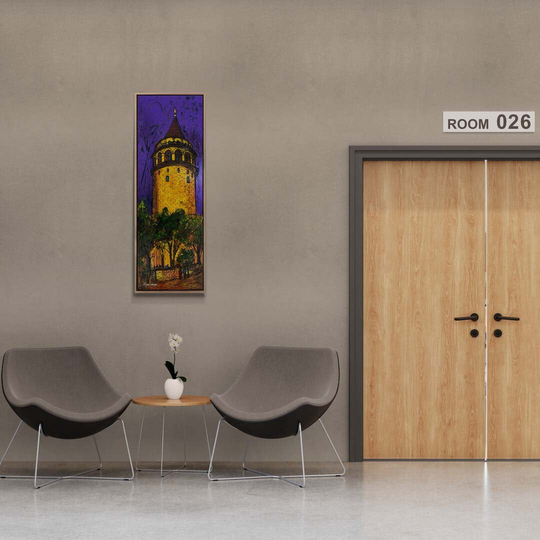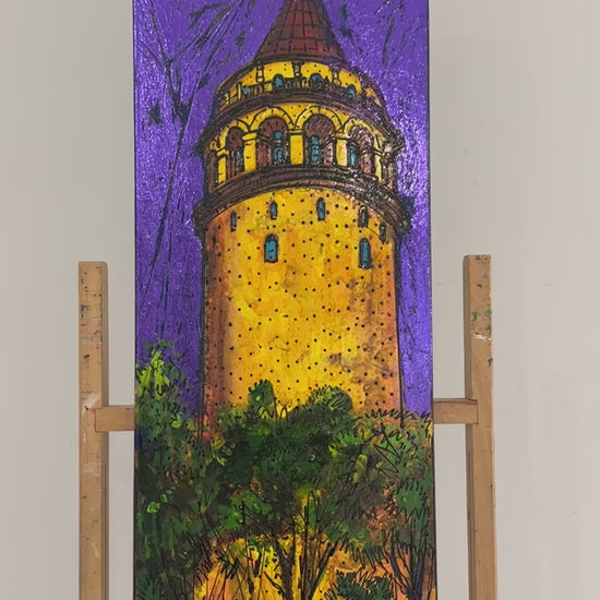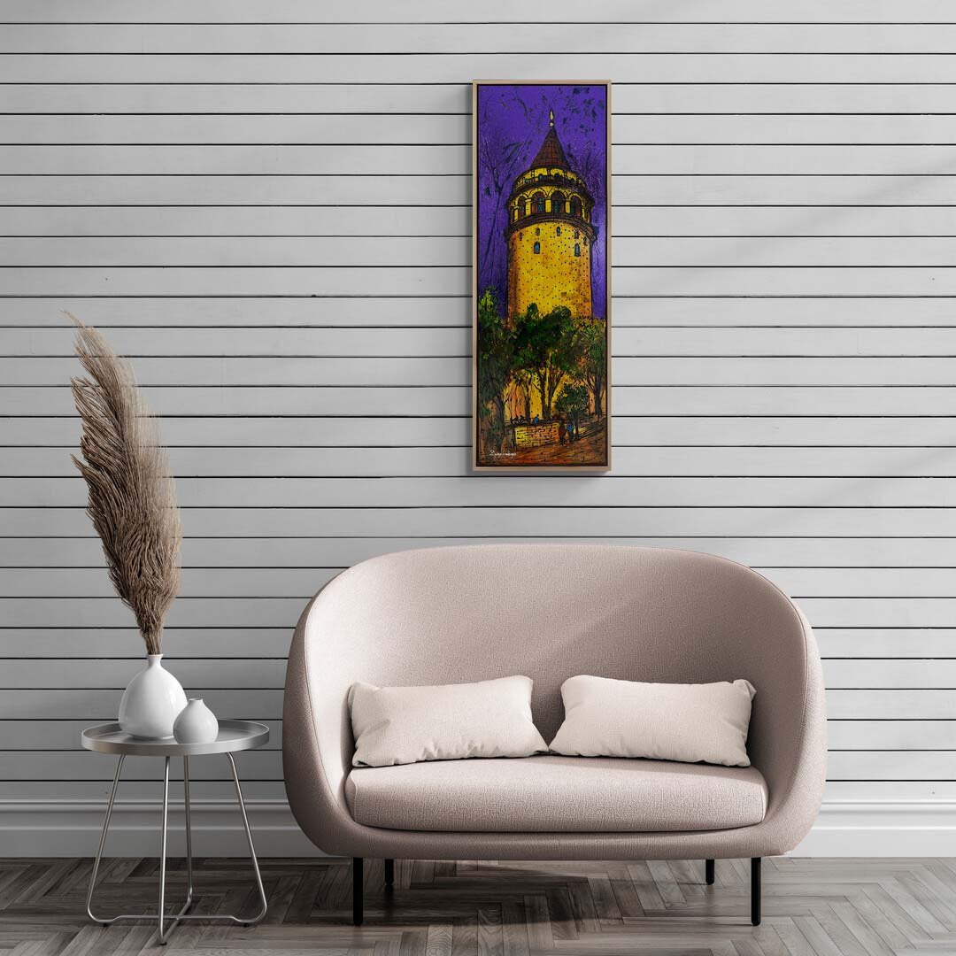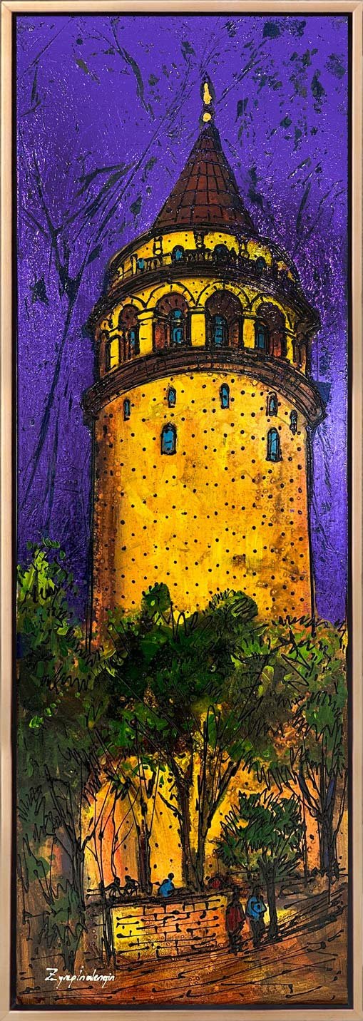 Gece Işıklarında Galata Yağlı Boya Tablosu