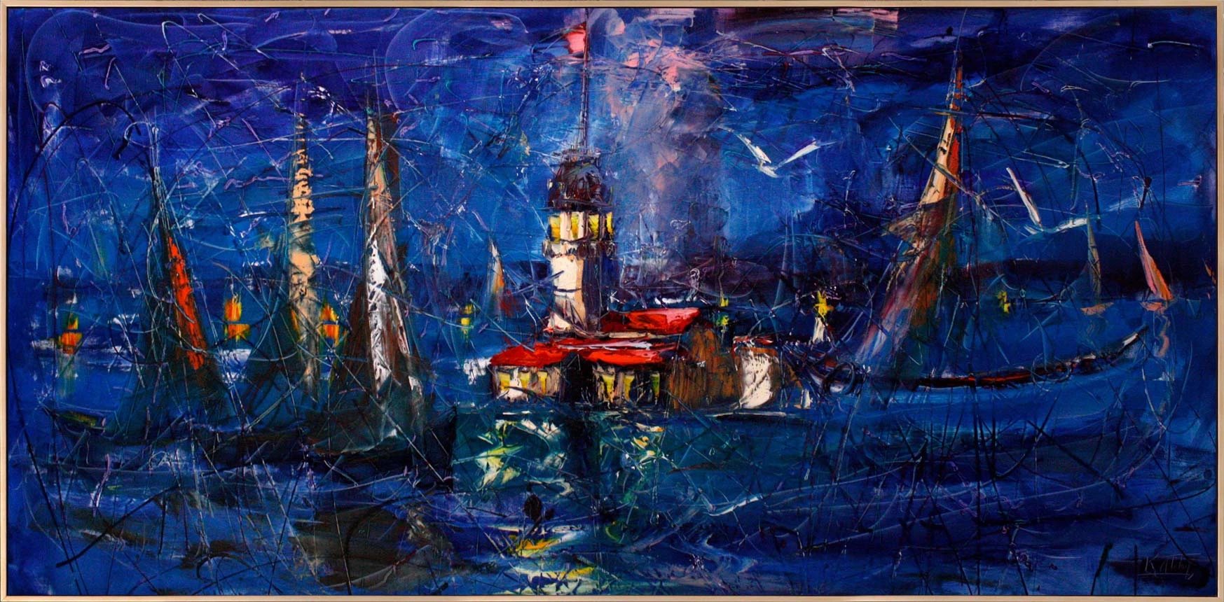 Gecenin Büyüsü ve Kız KulesiYağlı Boya Tablosu