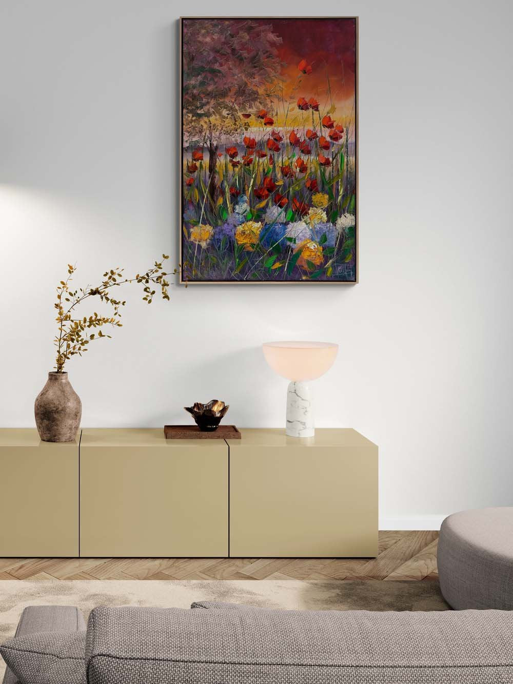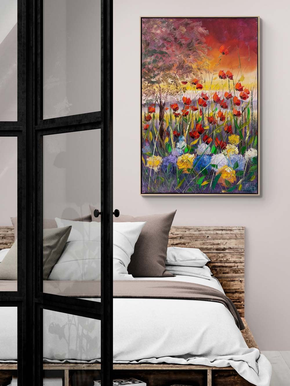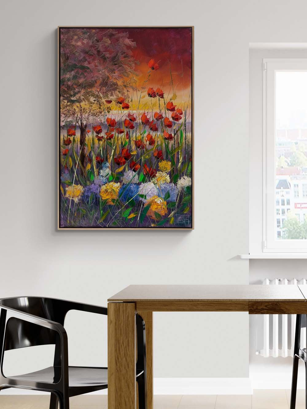 Gelincik ve Ortancanın Baharı Yağlı Boya Tablosu