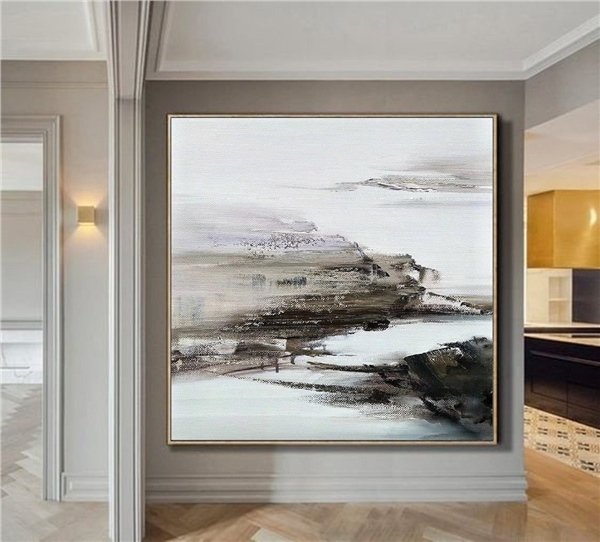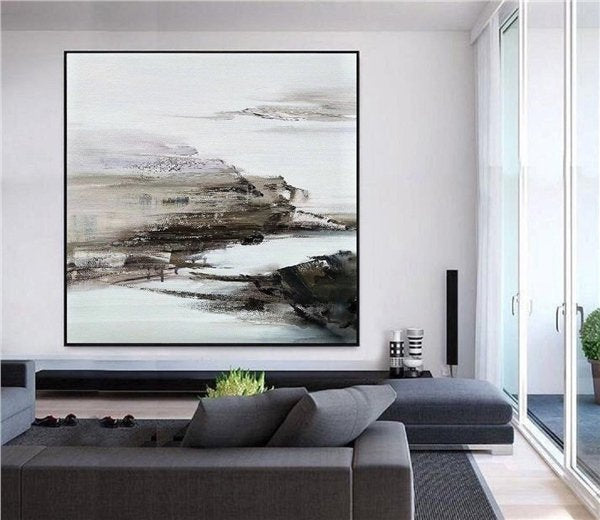 Gri Beyaz Siparişe Özel Soyut Yağlı Boya Tablo