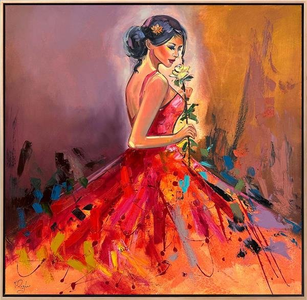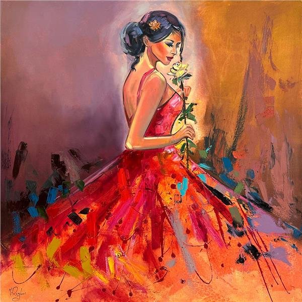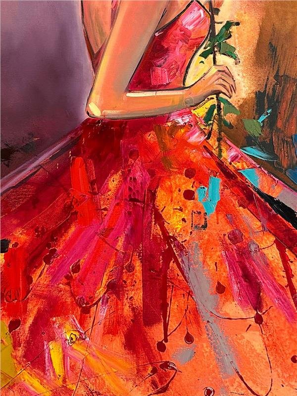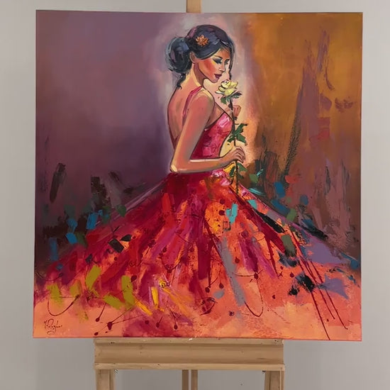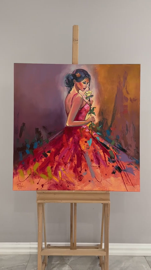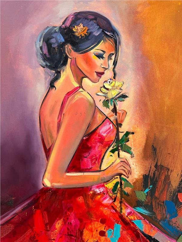 Gül ve Kadının Zarafeti Yağlı Boya Tablosu