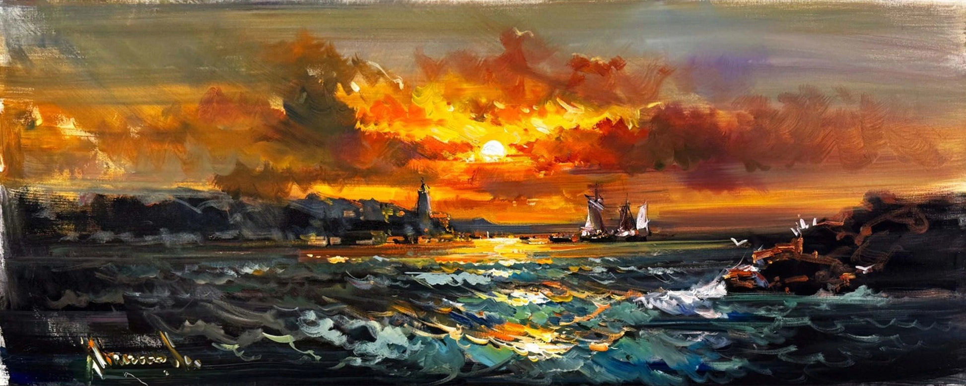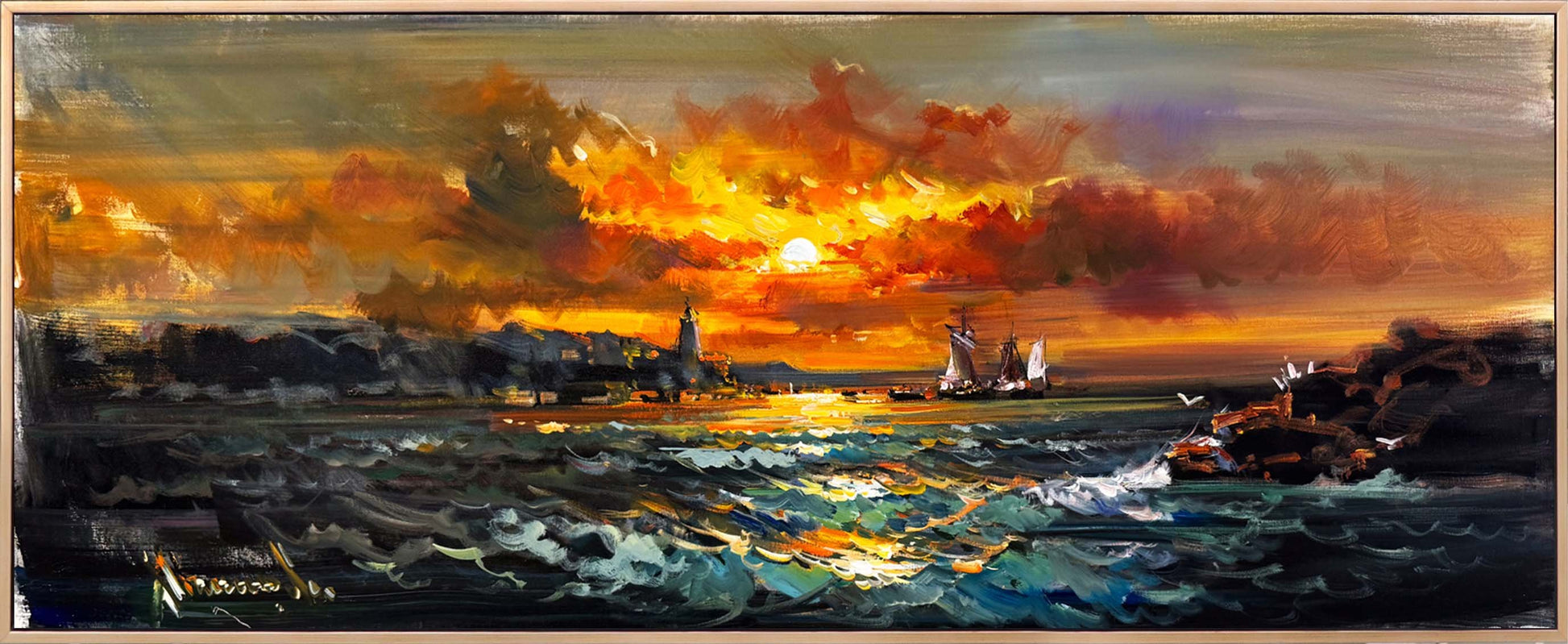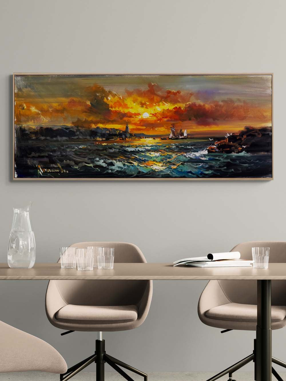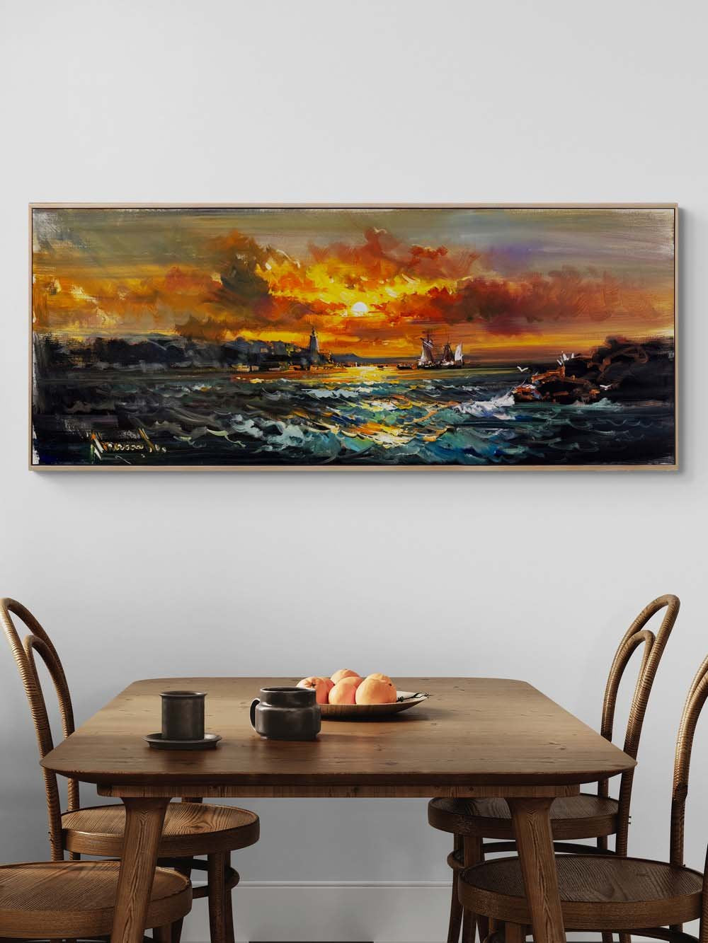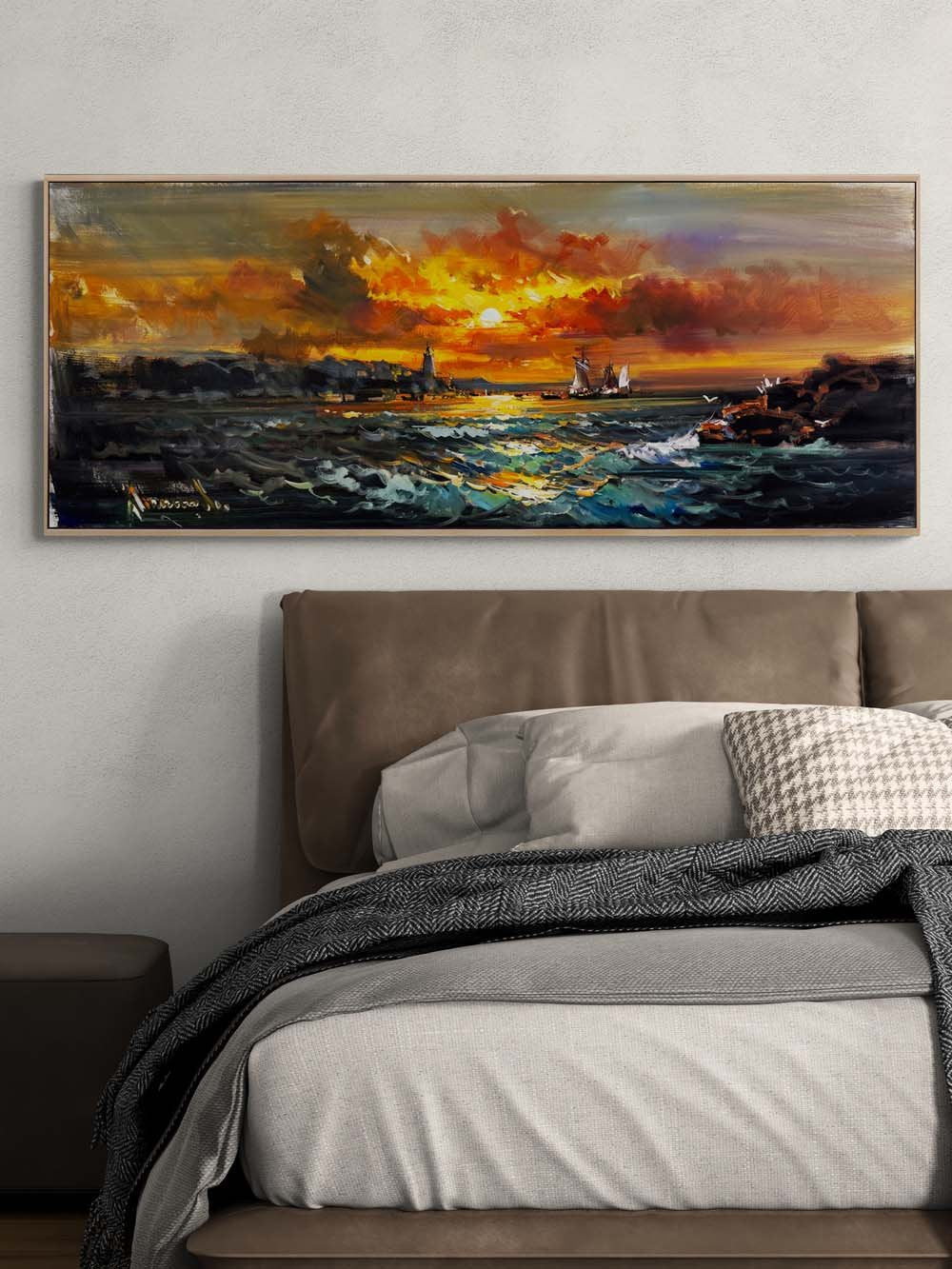 Gün Son Işığında Deniz Yağlı Boya Tablosu