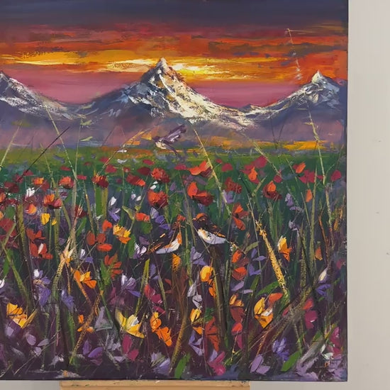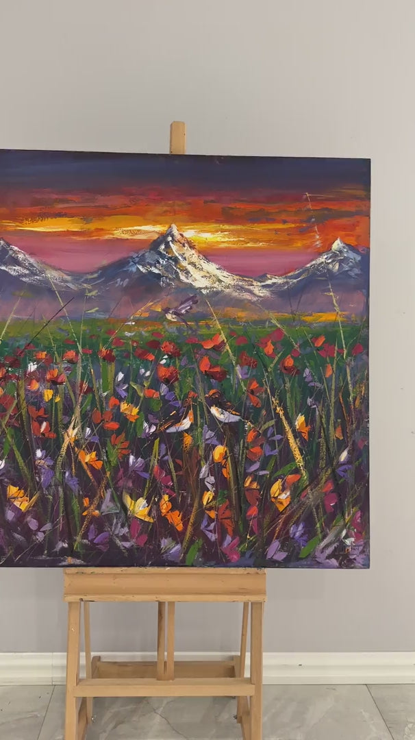 Günbatımında Gelincik Bahçesi Yağlı Boya Tablosu