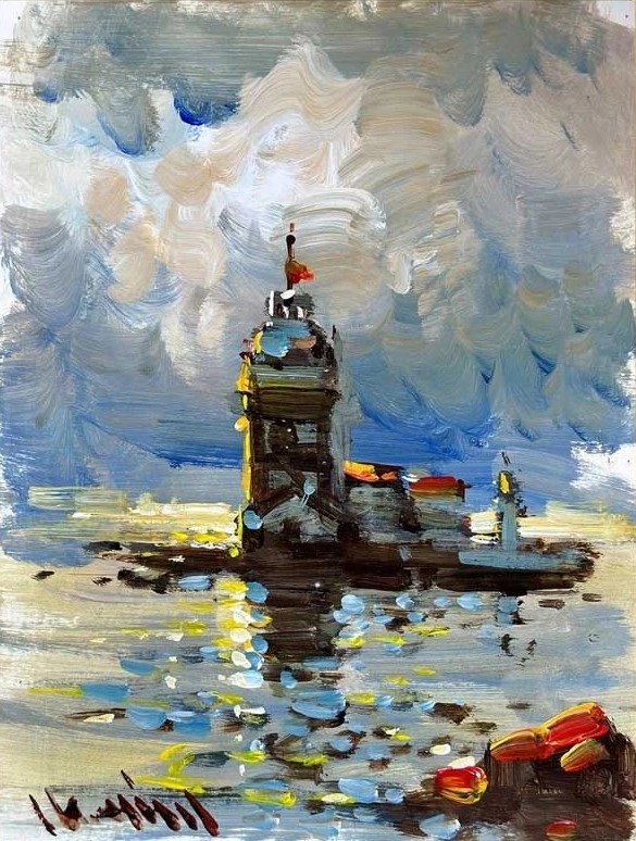 Günbatımında Kız Kulesi Yağlı Boya Tablosu