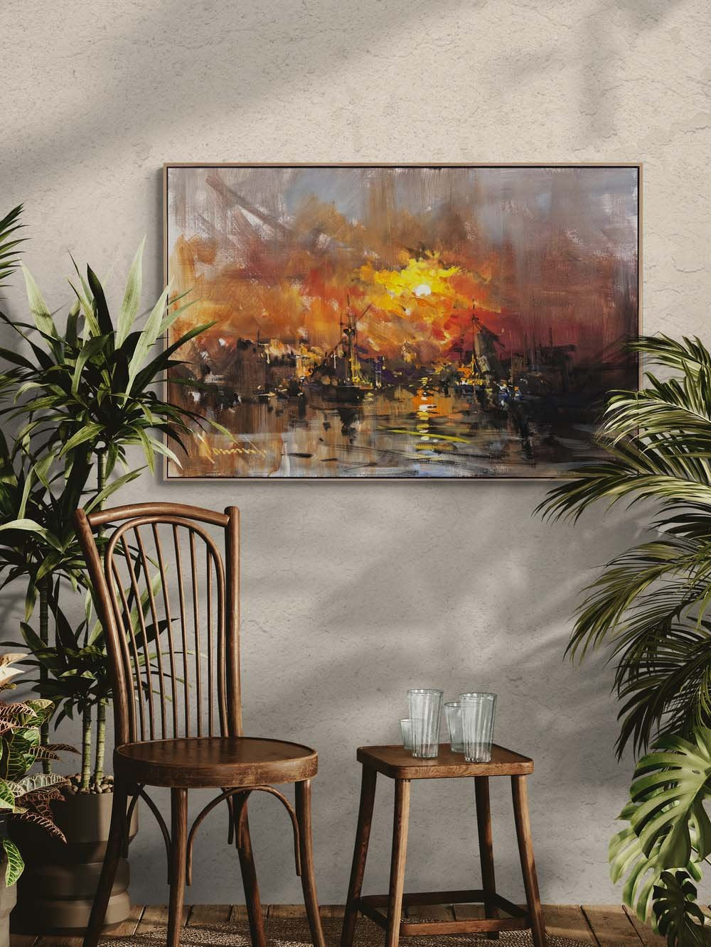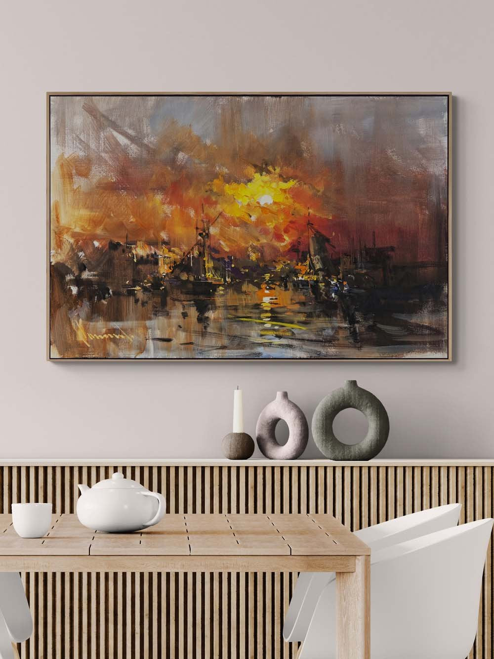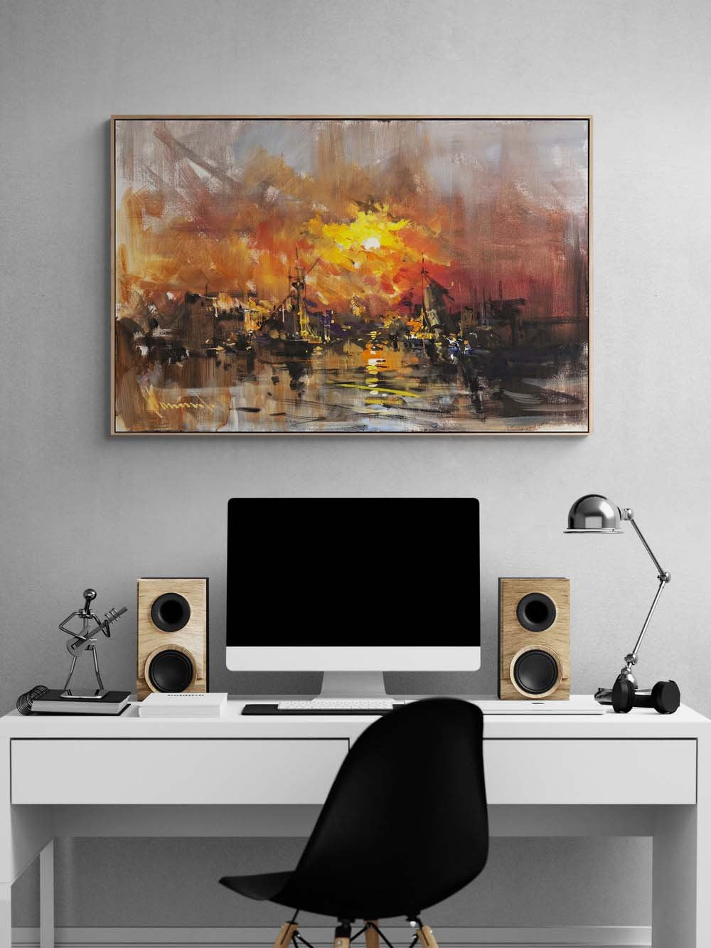 - Özel olarak üretilen 400 gr kalınlığında 1.sınıf sanatsal yağlıboya tuval üzerine çalışılır.