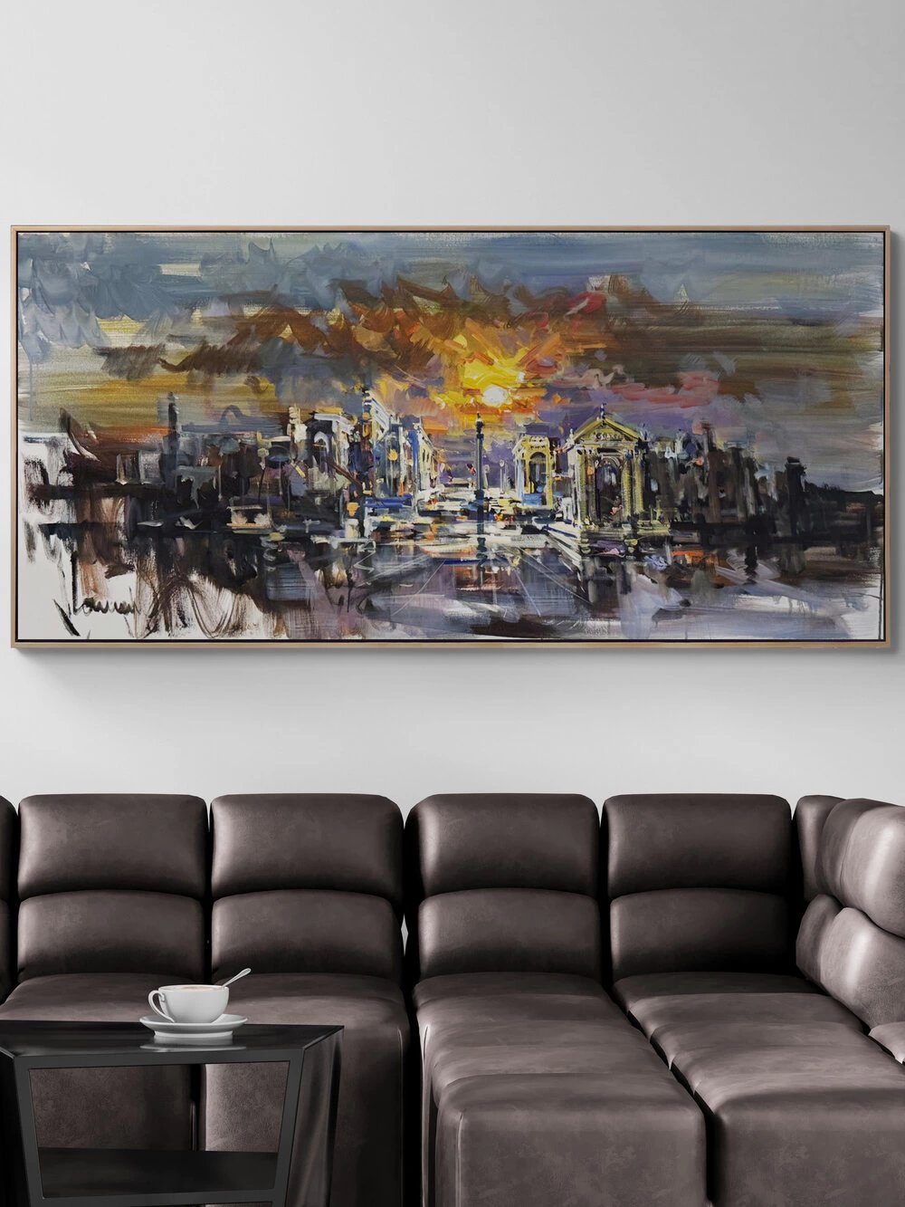 Güneşin Ardındaki Şehir Yağlı Boya Tablosu