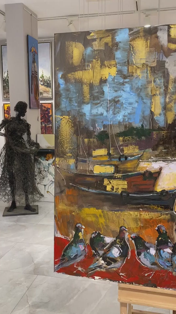 İstanbul Bekçisi Güvercinler Yağlı Boya Tablosu