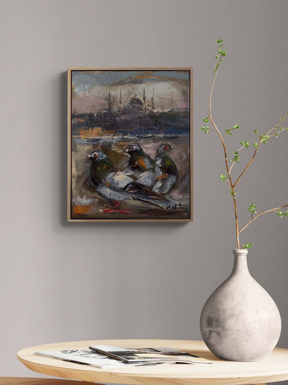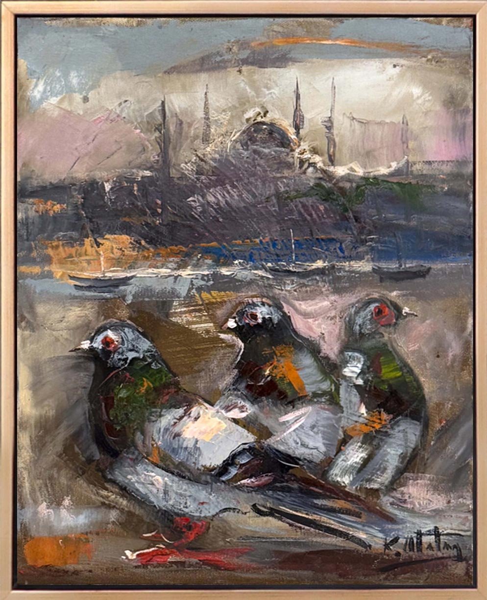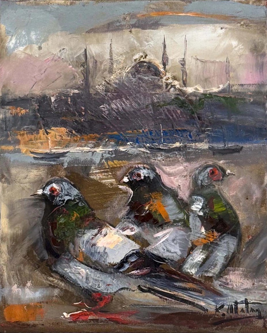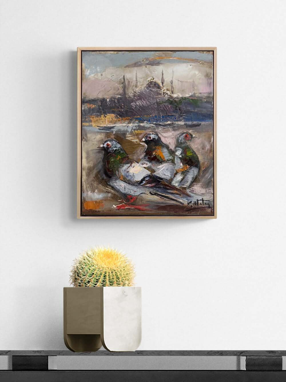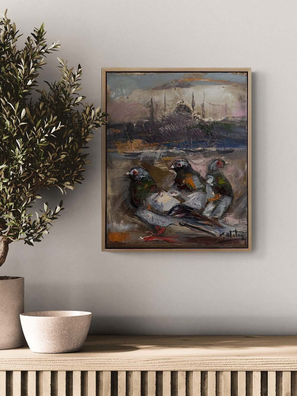 Güvercinlerin Boğazda Şarkısı Yağlı Boya Tablosu