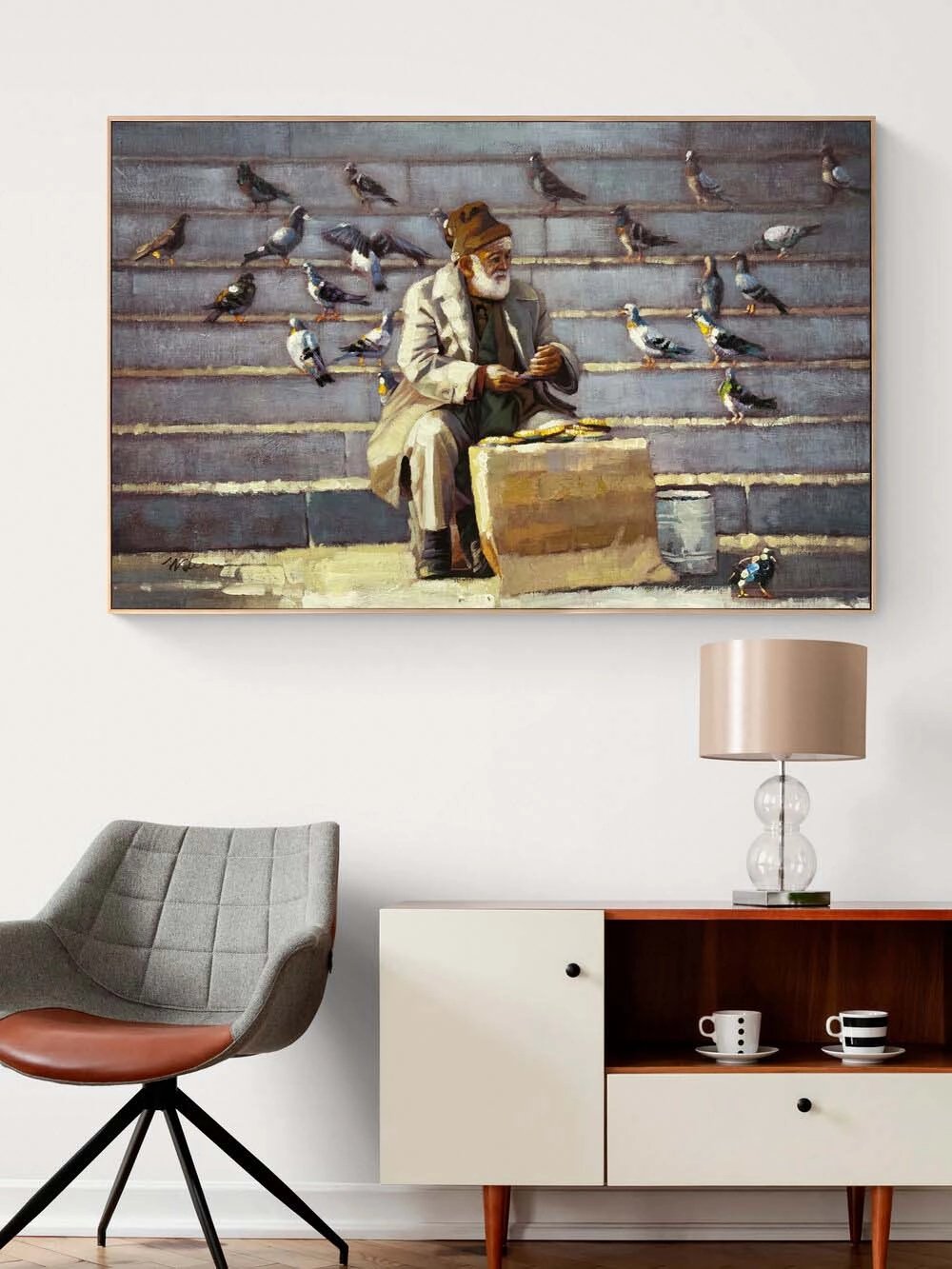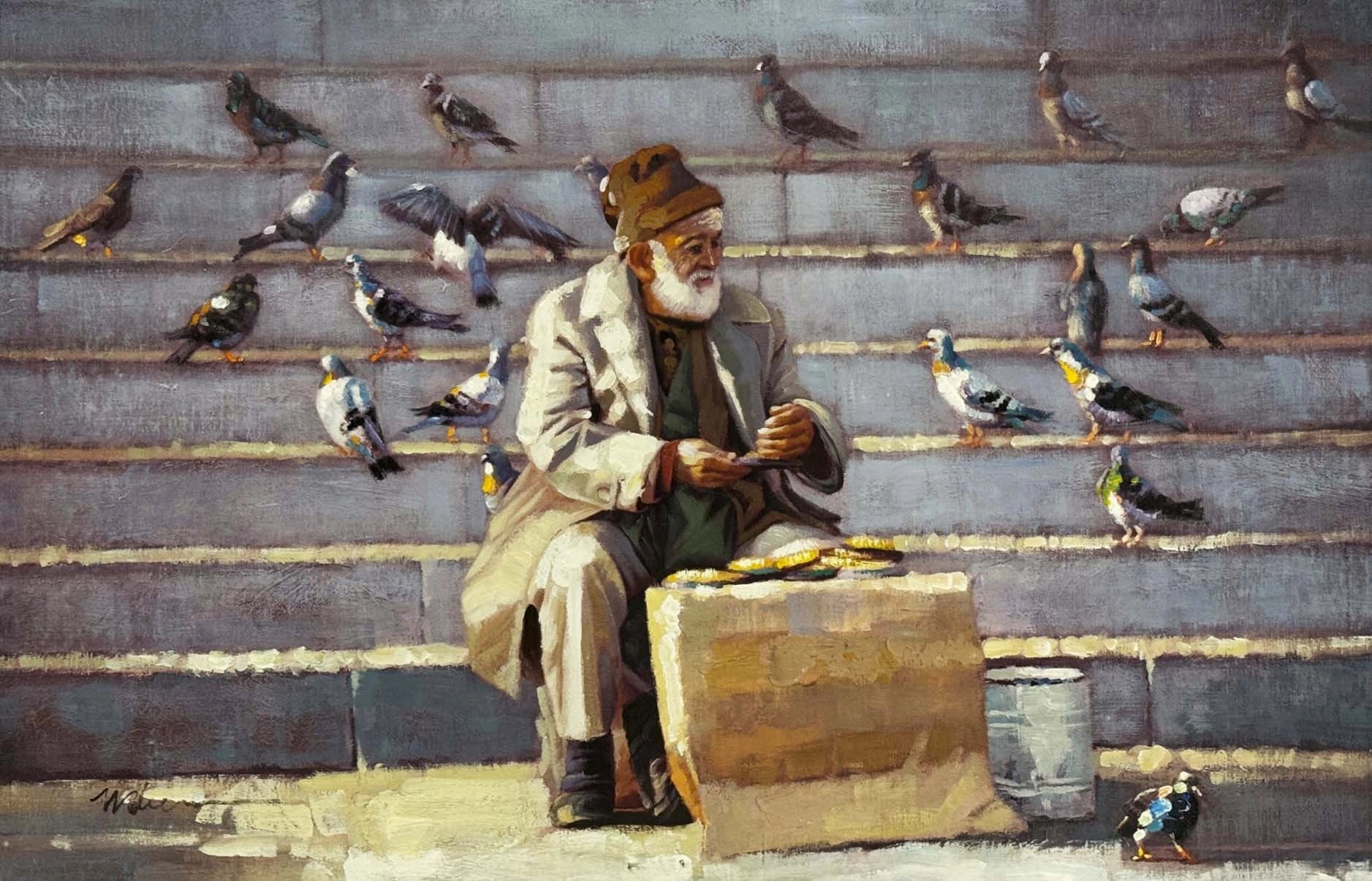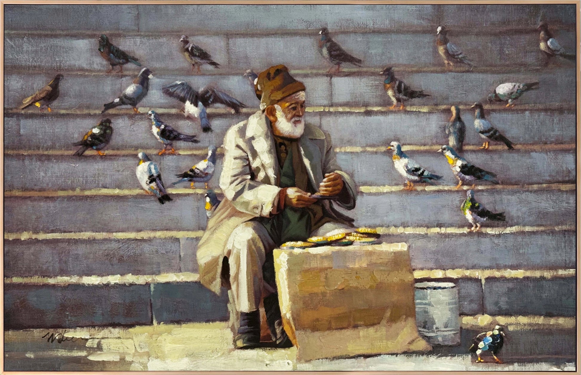 Güvercinlerin Dostu Yağlı Boya Tablosu