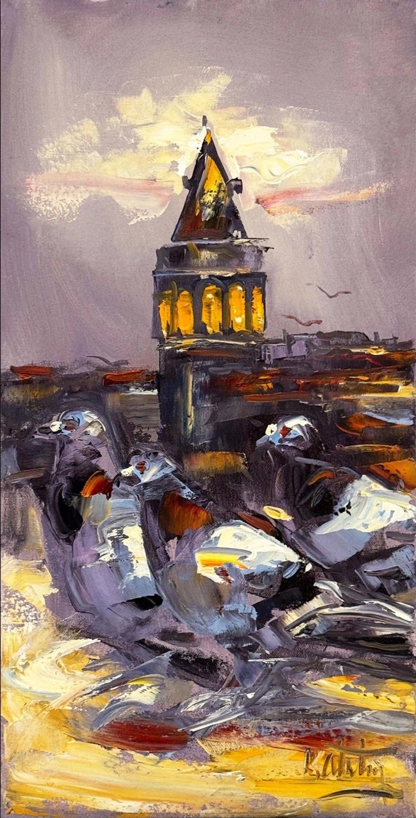 Güvercinlerin Şehri Yağlı Boya Tablosu