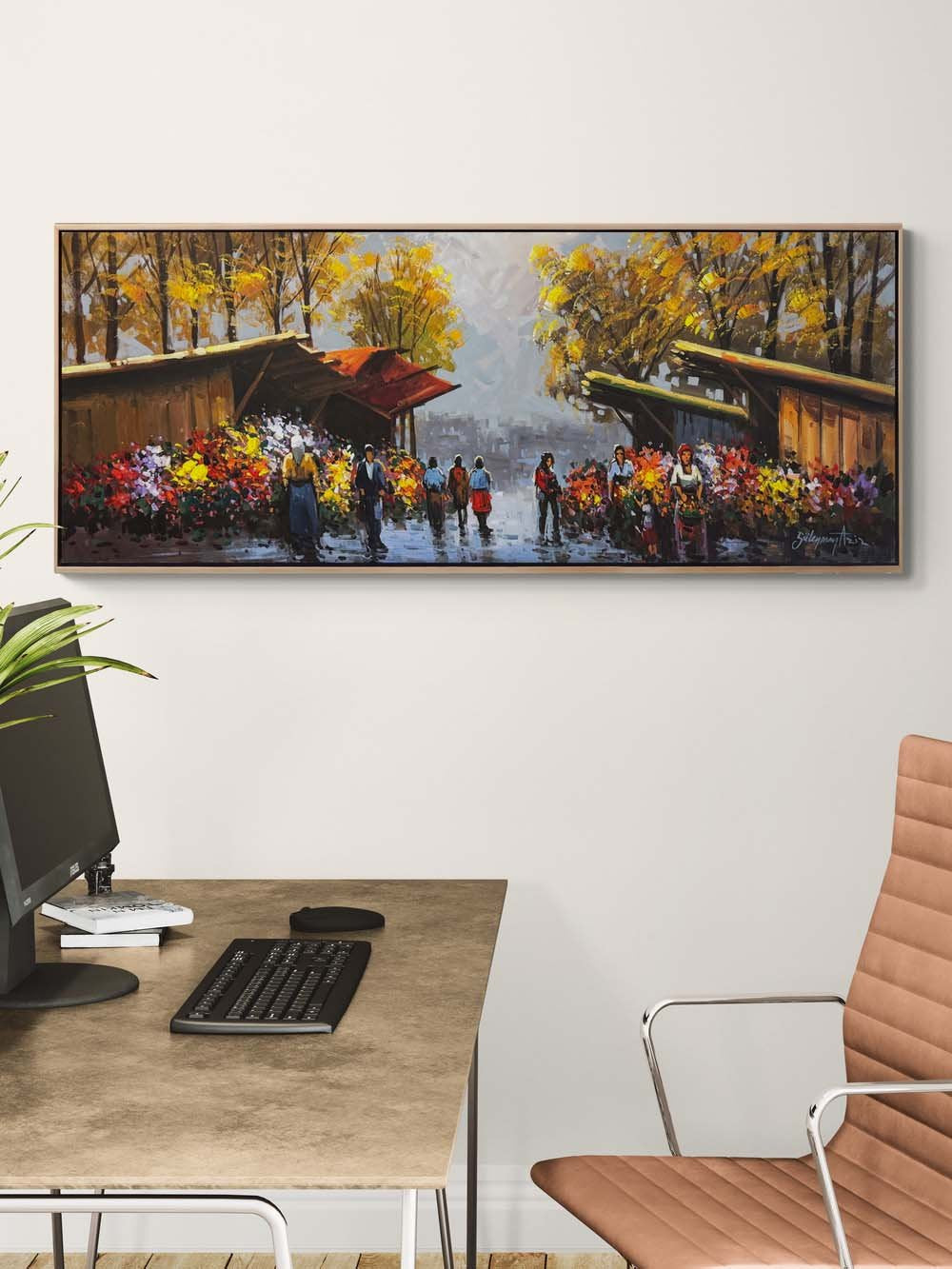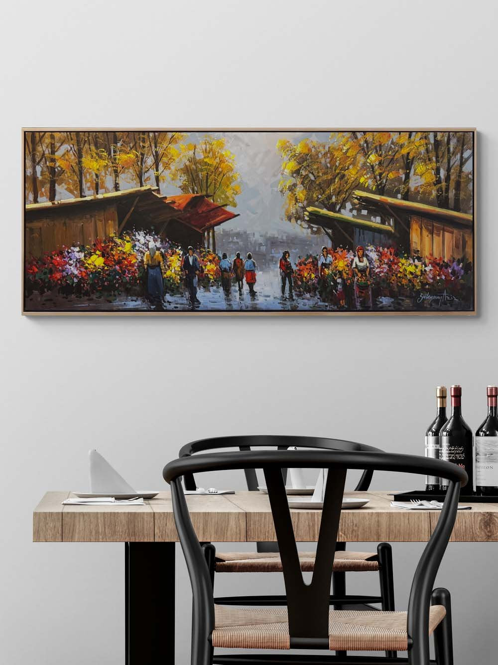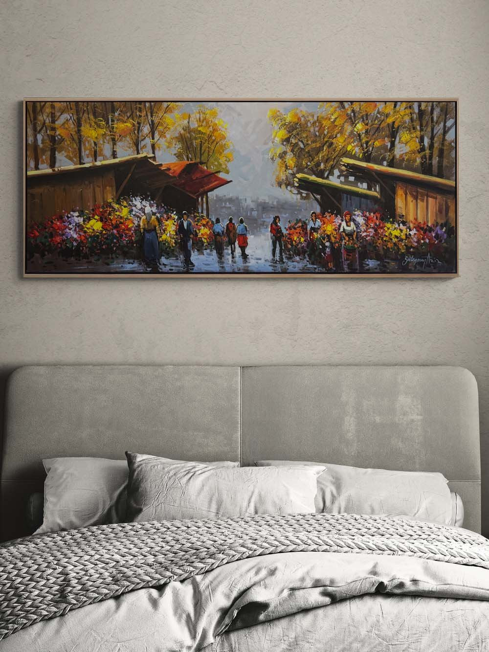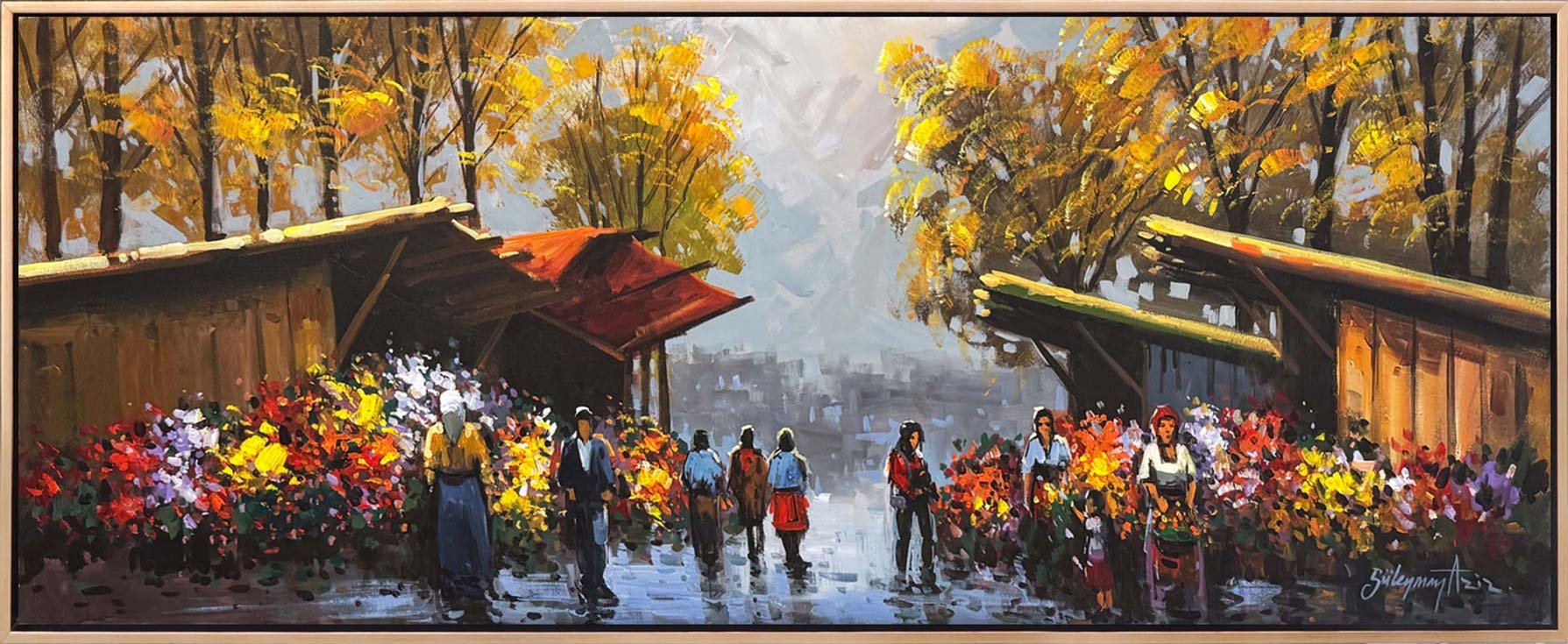 Güz Mevsiminde Çiçekçiler Yağlı Boya Tablosu