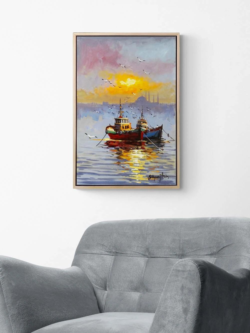 Haliç’te Son Işık Yağlı Boya Tablosu