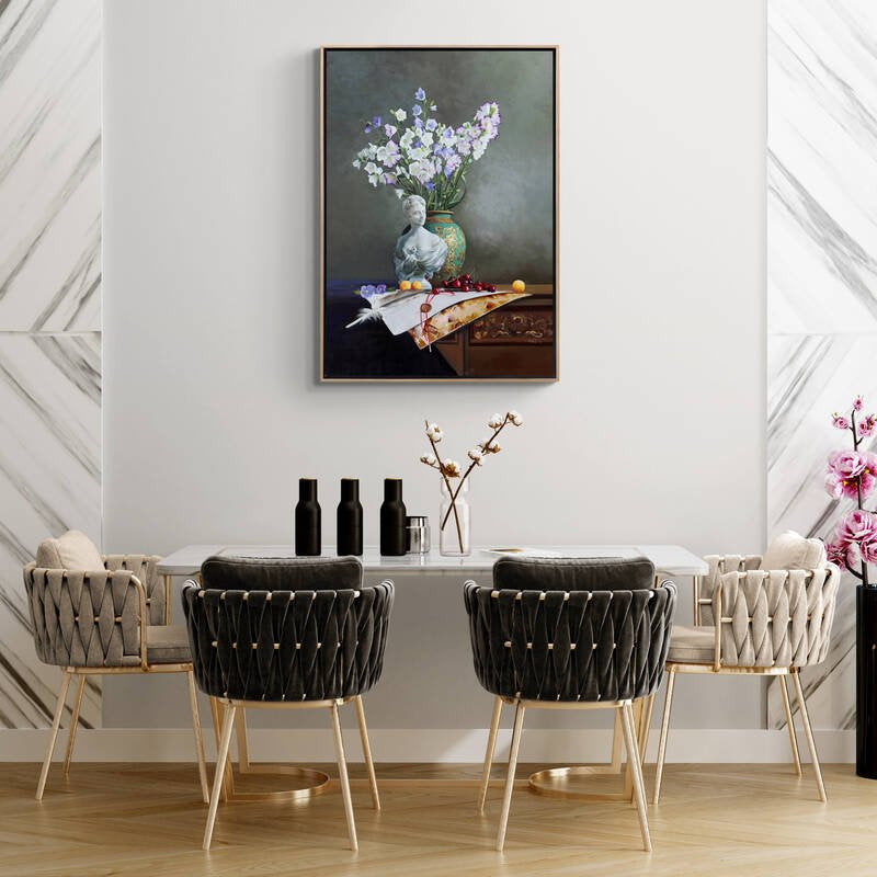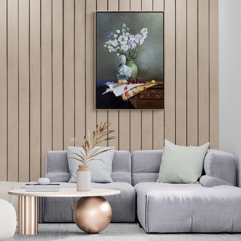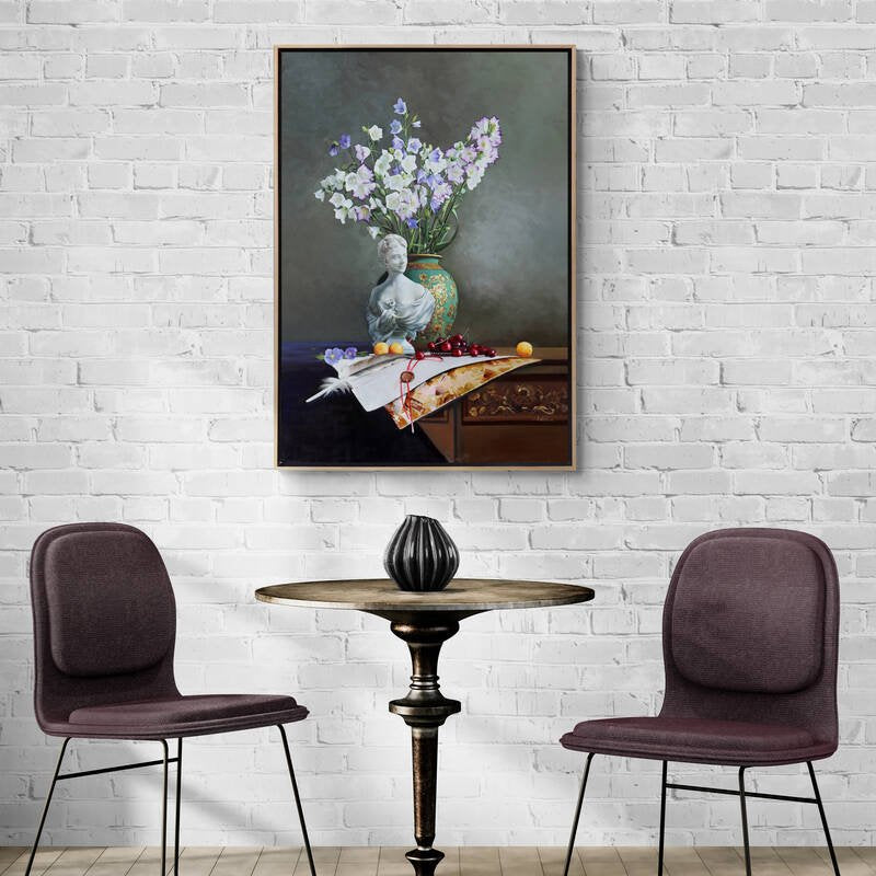 Heykel ve Çan Çiçeklerinin Ahengi Siparişe Özel Yağlı Boya Tablo