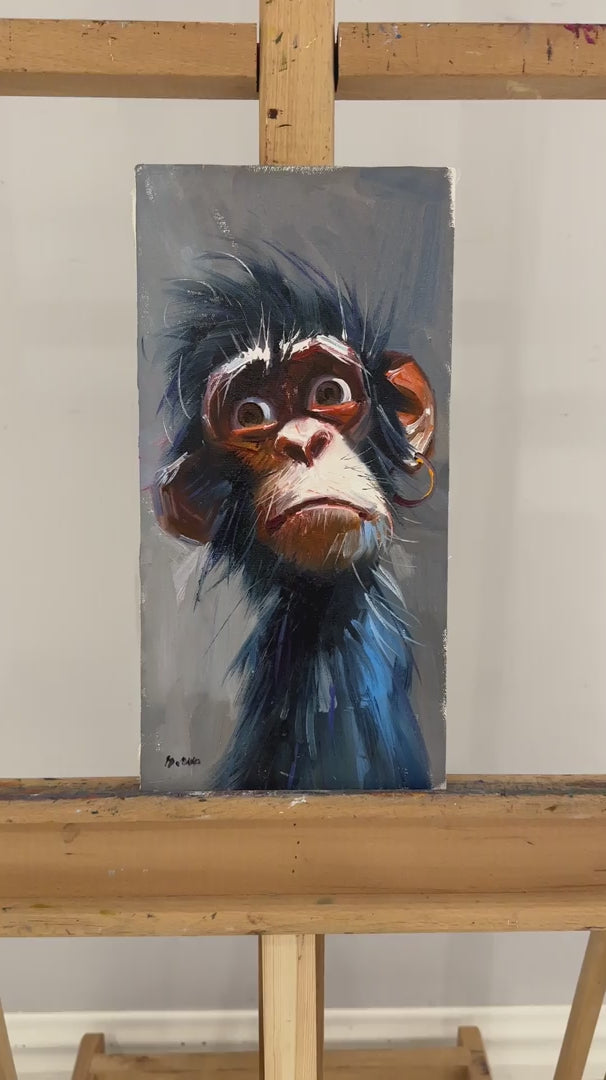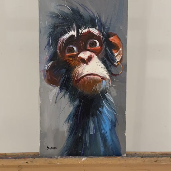Hüzünlü Maymun Yağlı Boya Tablosu