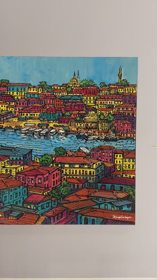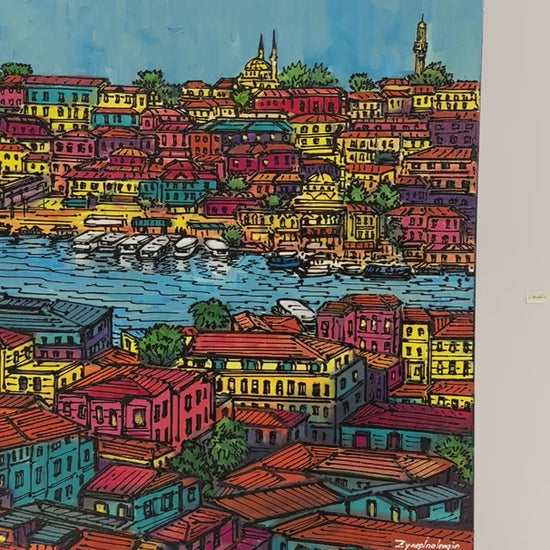 Işığın Dansı Galata'da Yağlı Boya Tablosu