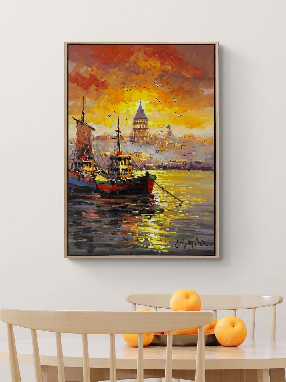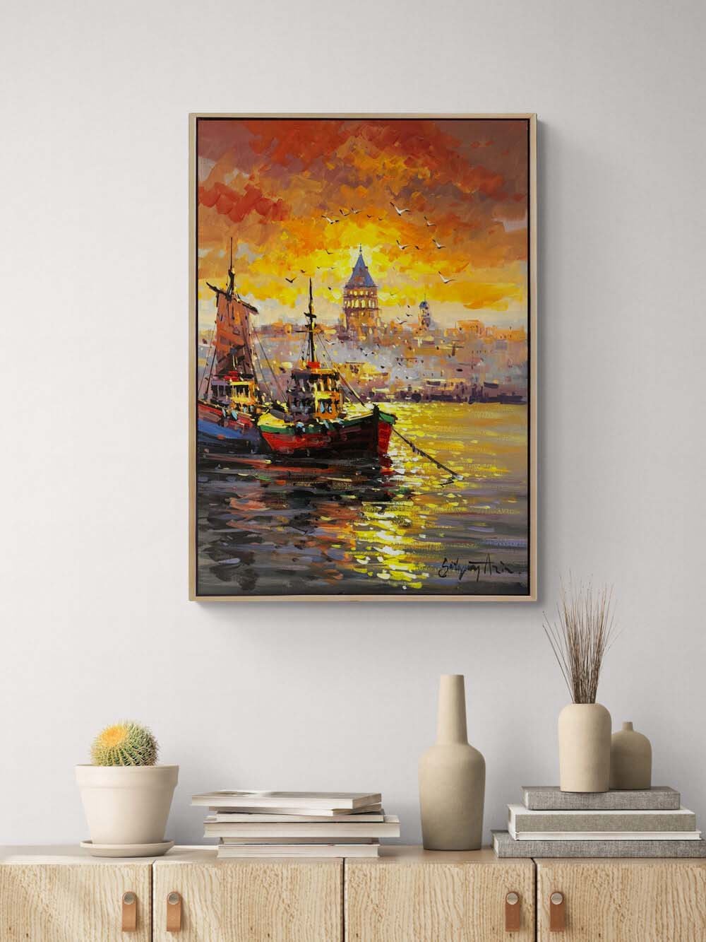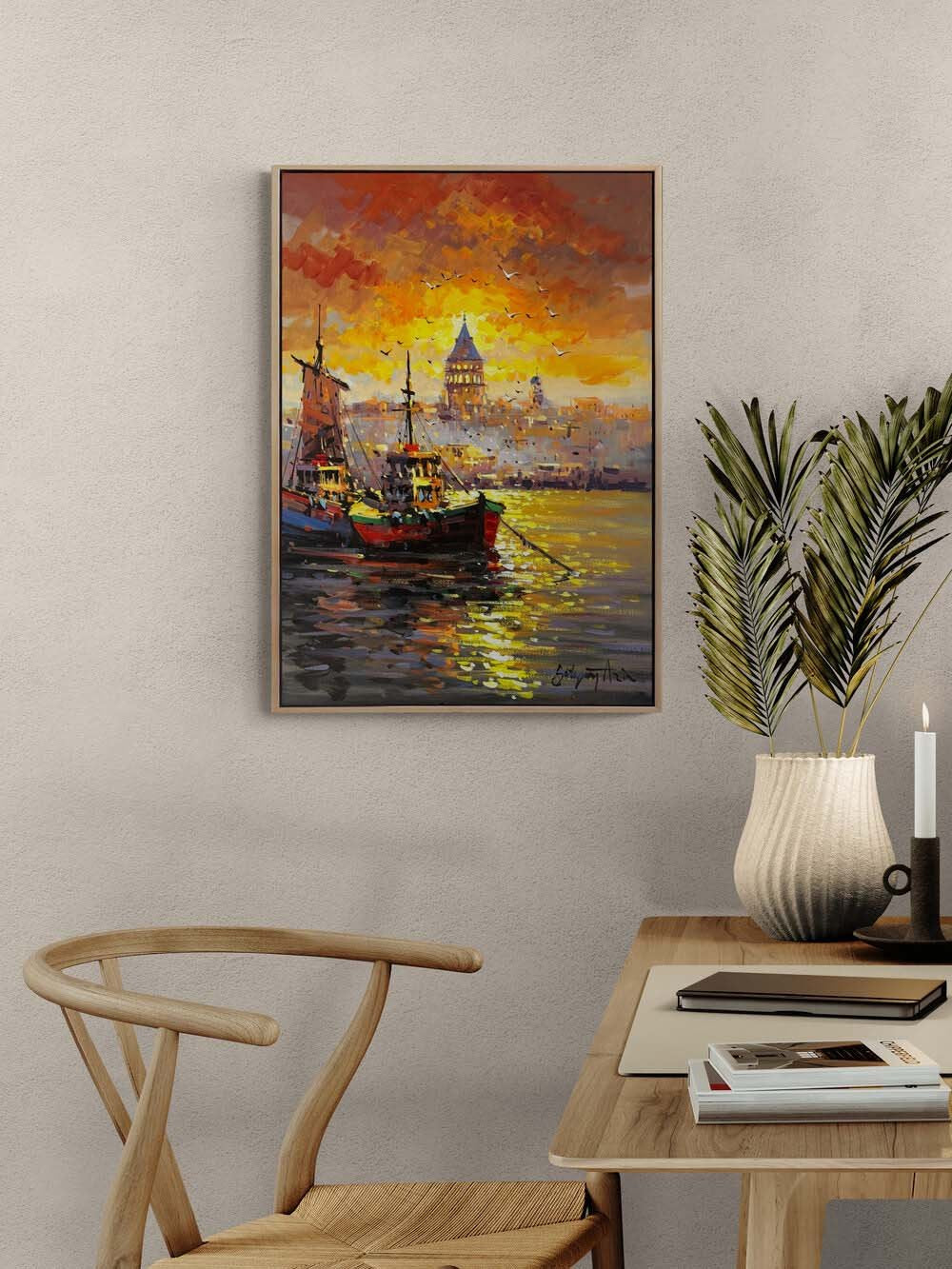 İstanbul Boğaz'ında Akşam Yağlı Boya Tablosu