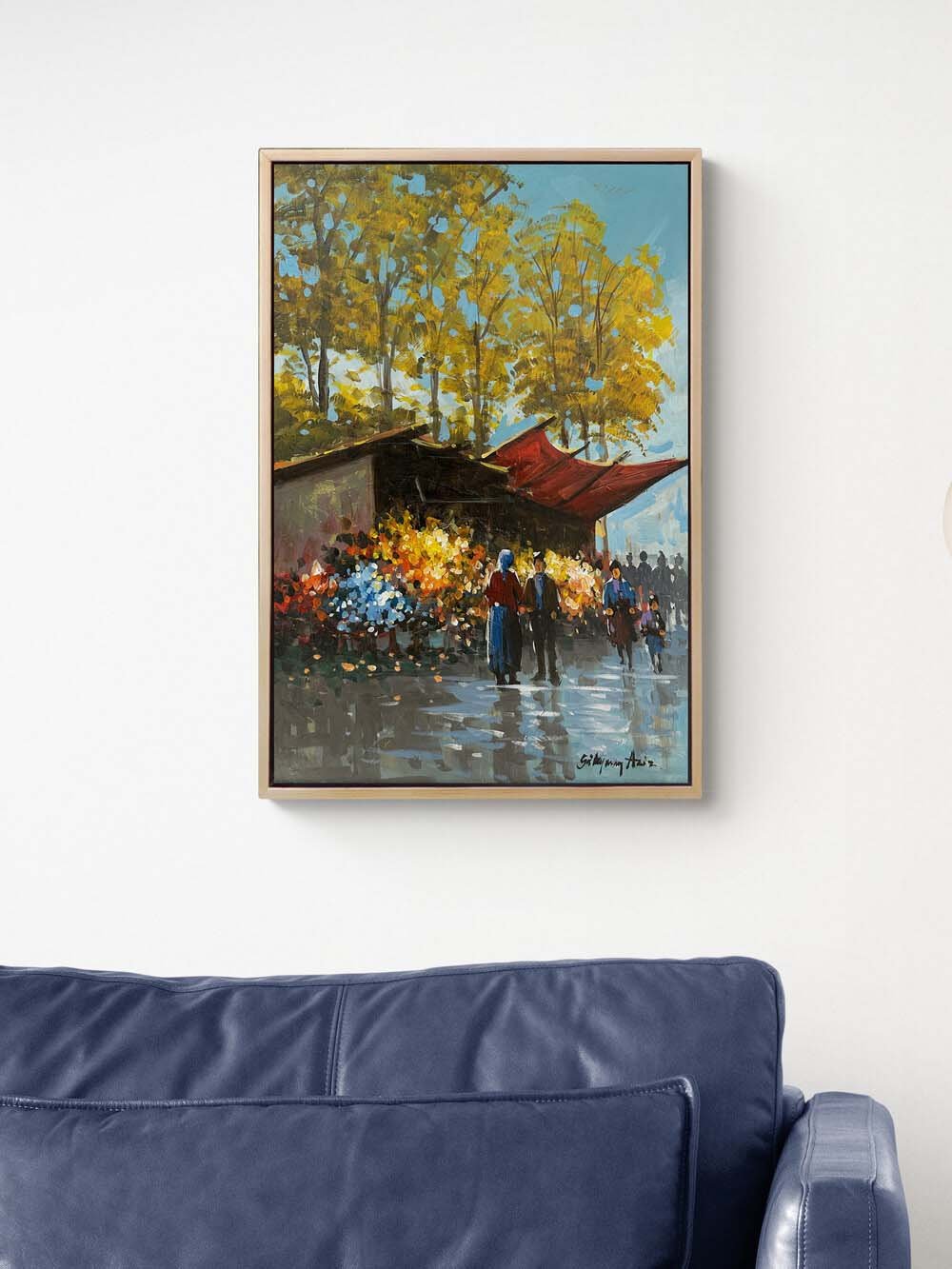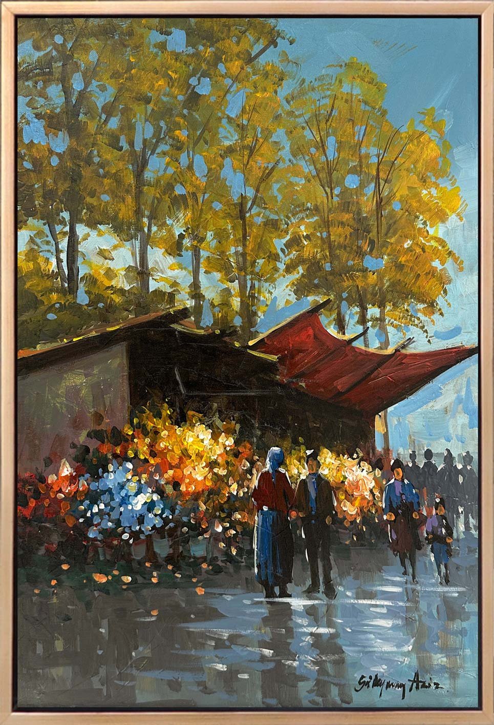 Kaldırımda Bir Bahar Yağlı Boya Tablosu