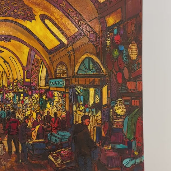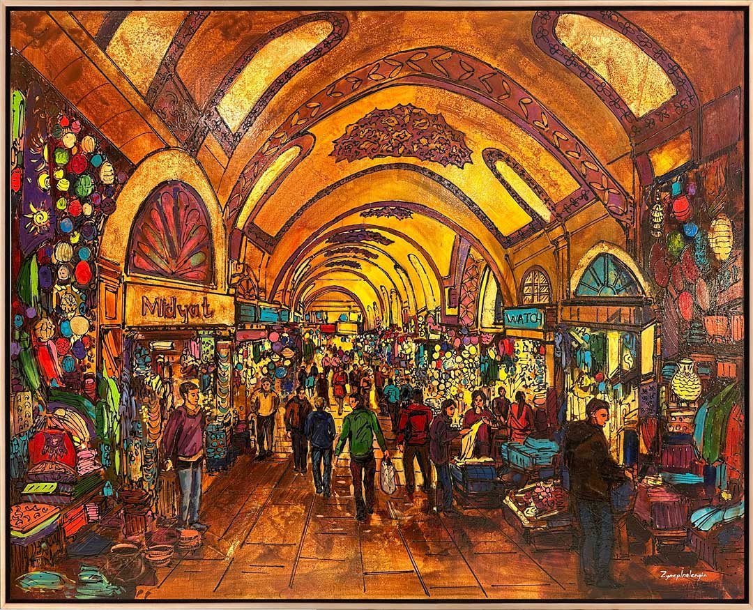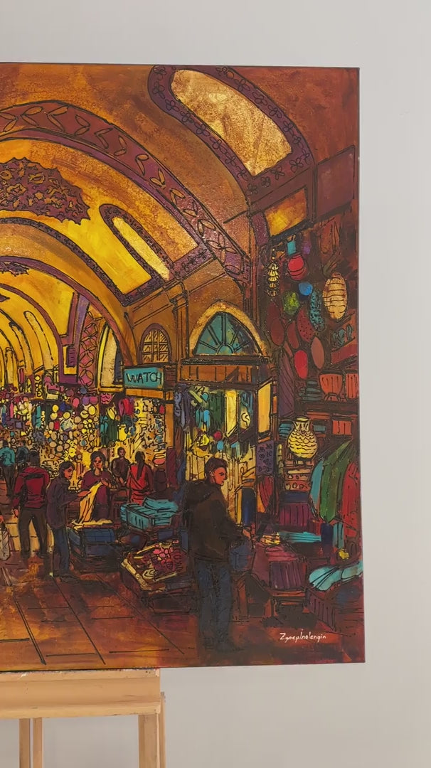 Kapalı Çarşı'nın Eski Dokusu Yağlı Boya Tablosu
