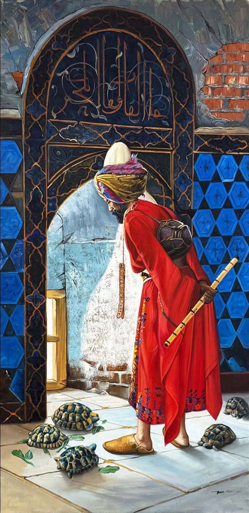 Kaplumbağa Terbiyecisi Hatırası Yağlı Boya Tablosu