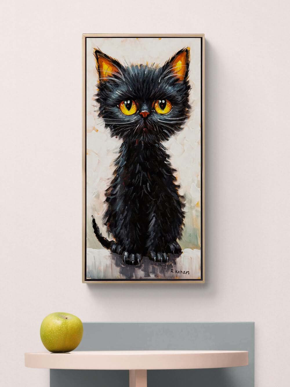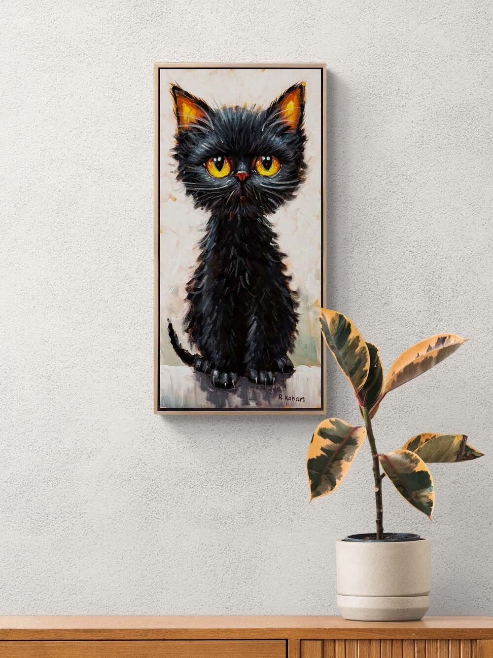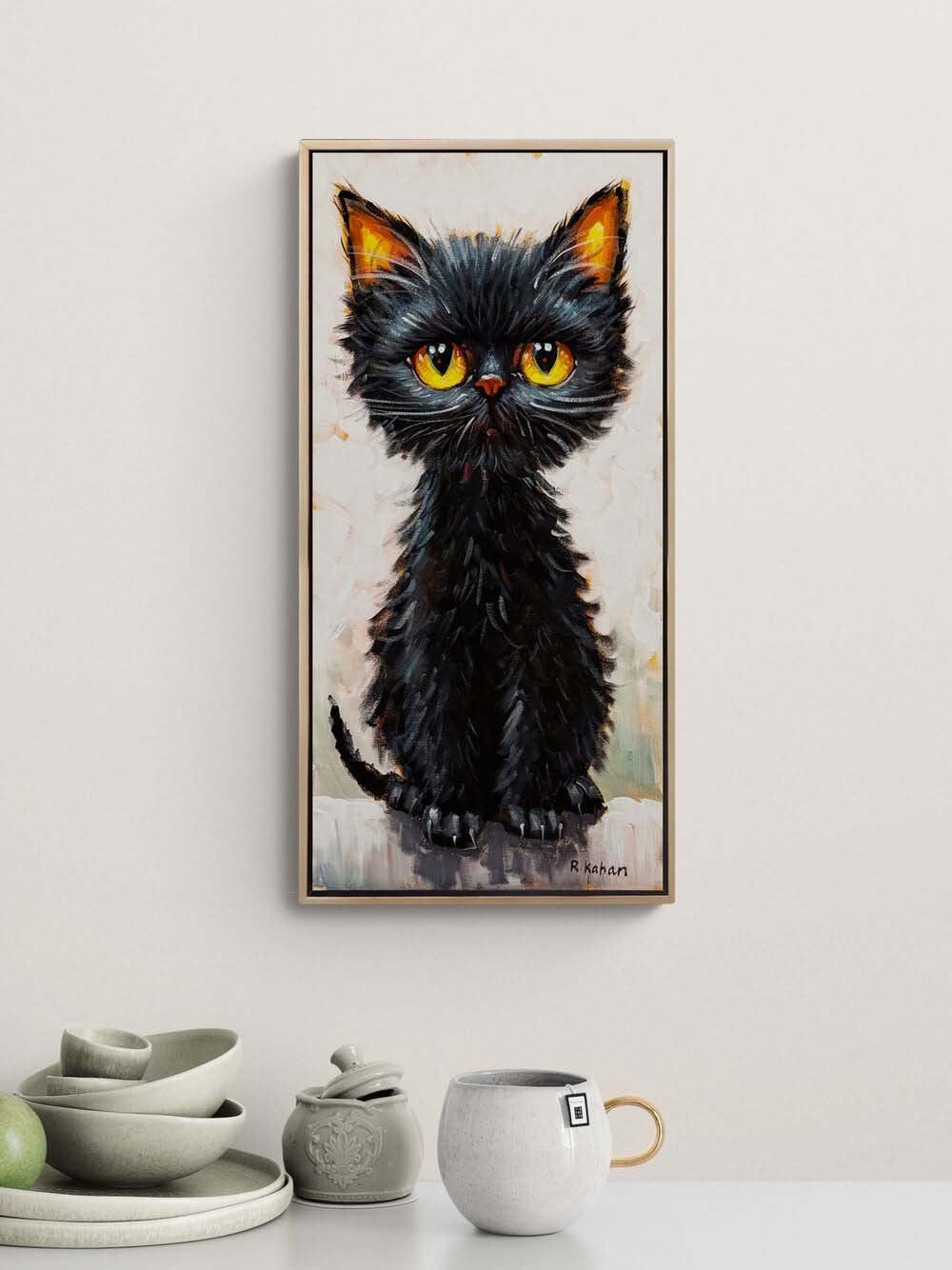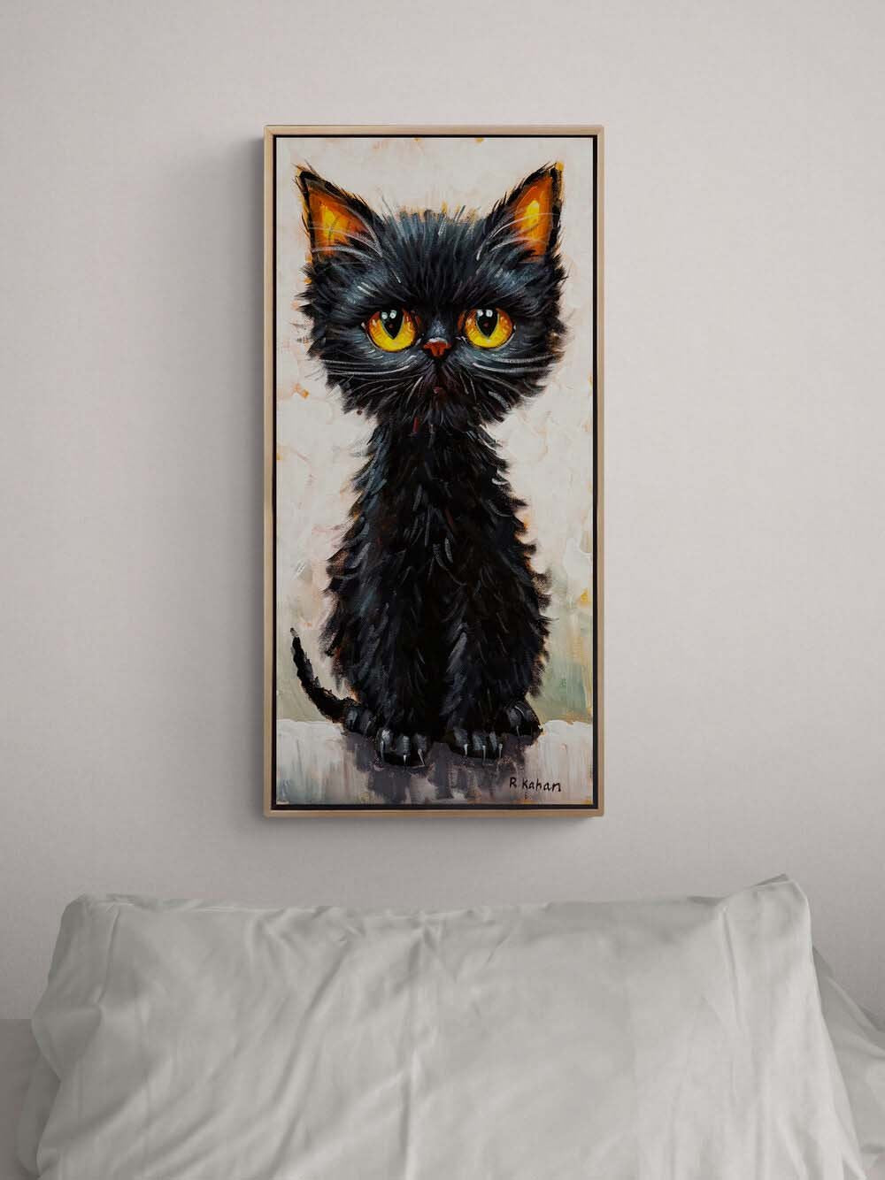 Kara Kedinin Düşleri Yağlı Boya Tablosu