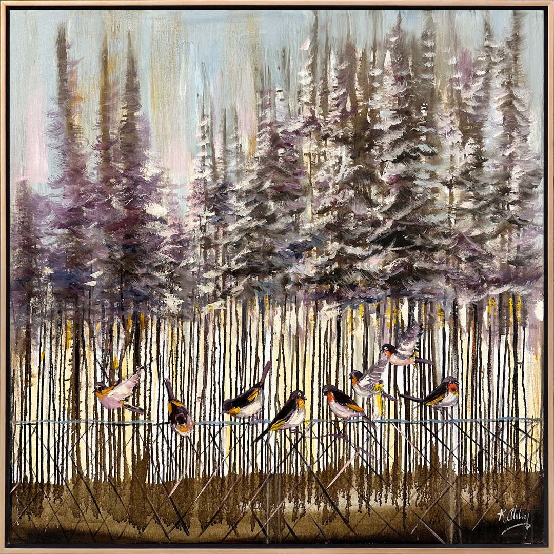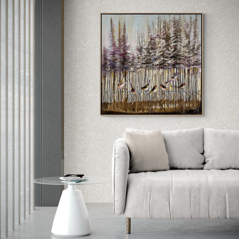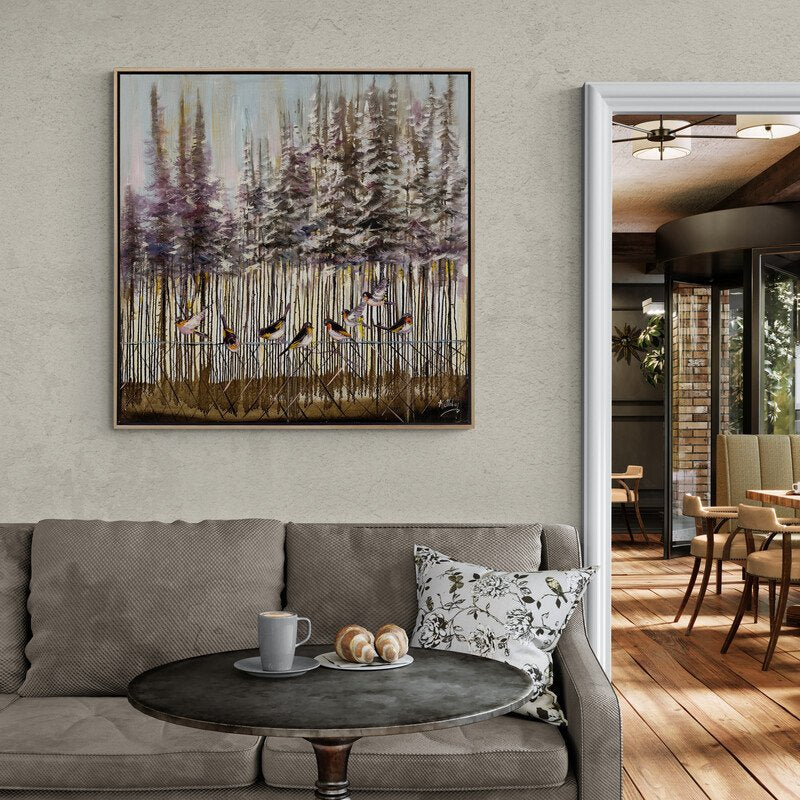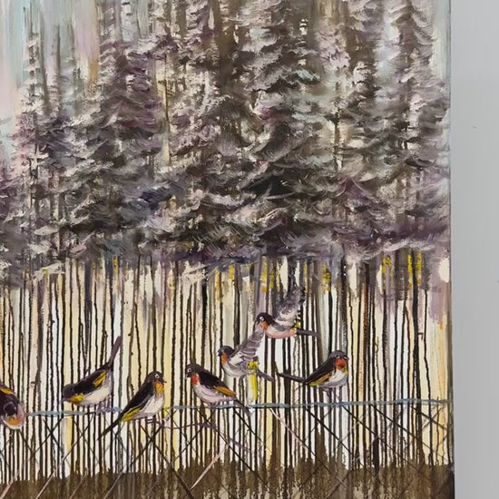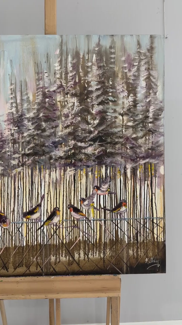 Karla Kaplı Ormanlarda Kuşlar Yağlı Boya Tablosu