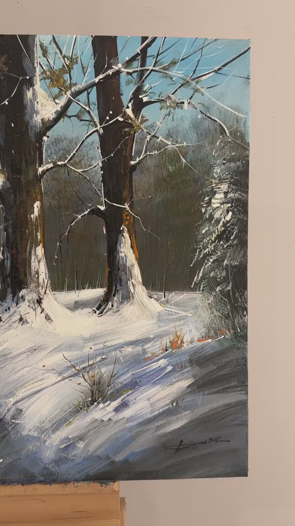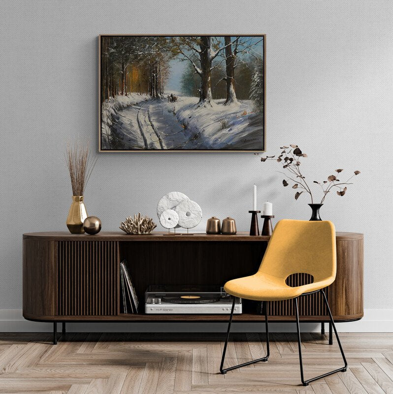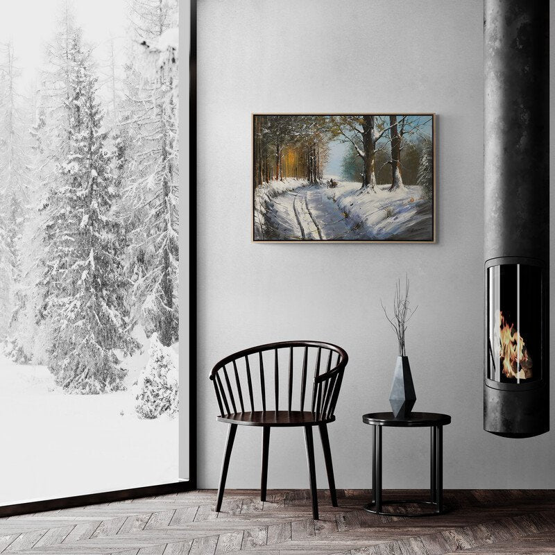 Karlı Ormanın İzleri Yağlı Boya Tablosu