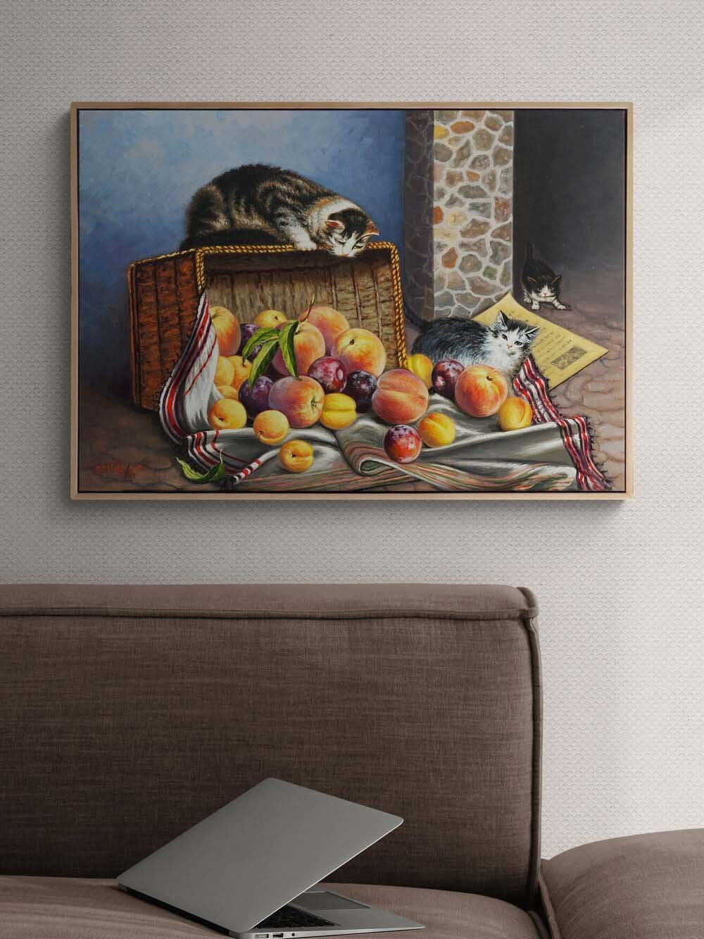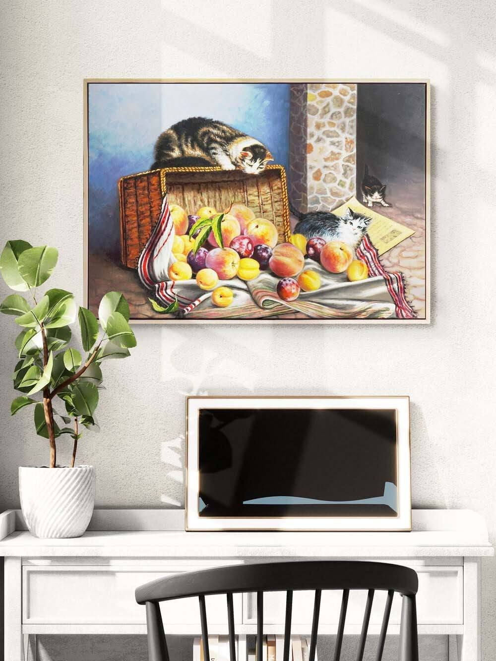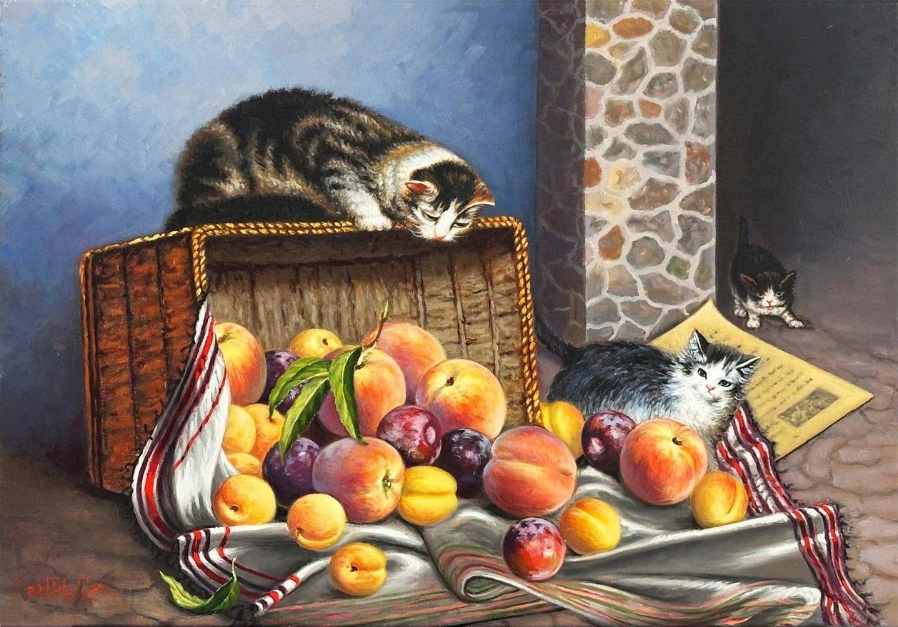 Kediler Meyve Sepetinde Yağlı Boya Tablosu
