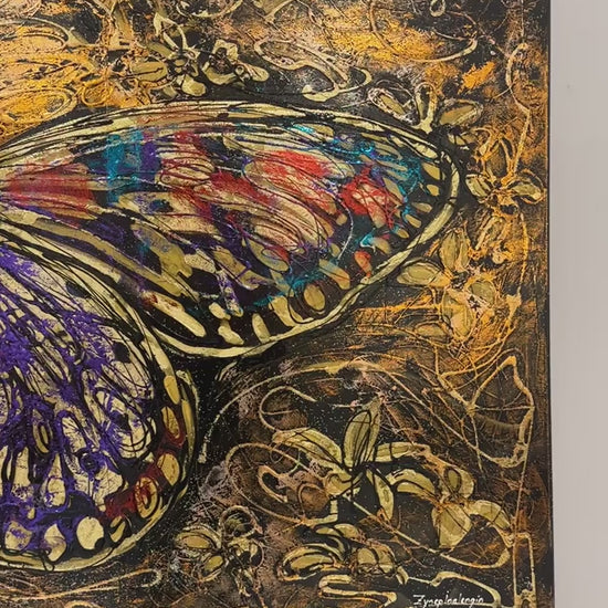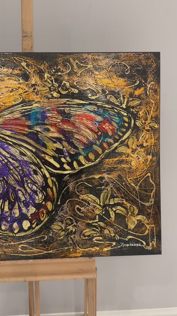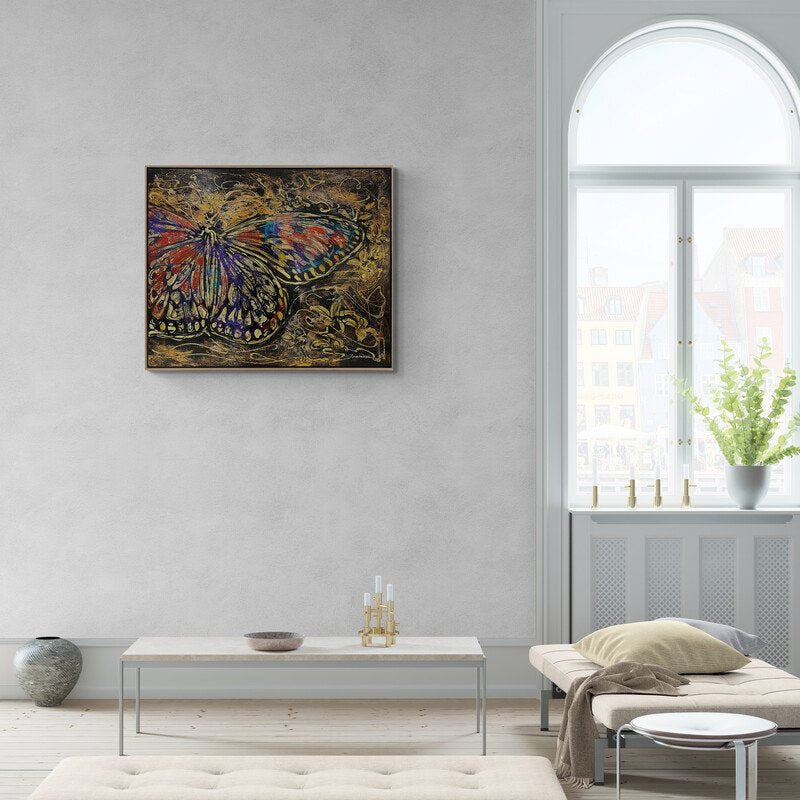Kelebeğin Renkli Kanatları Yağlı Boya Tablosu