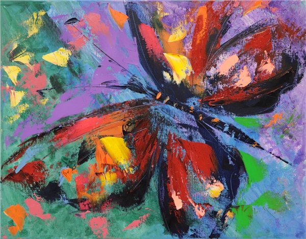 Kelebeğin Renklerle Dansı Yağlı Boya Tablosu