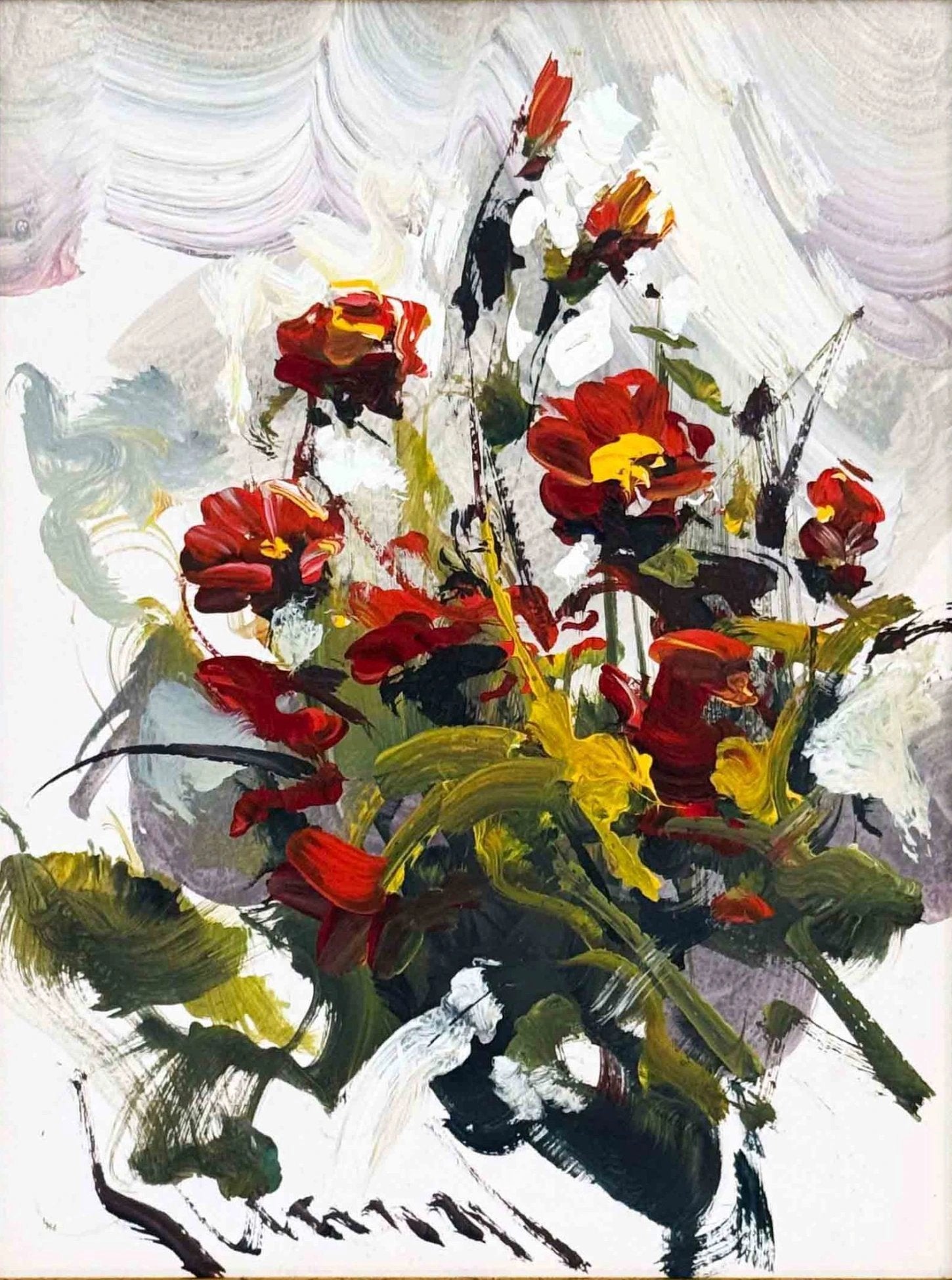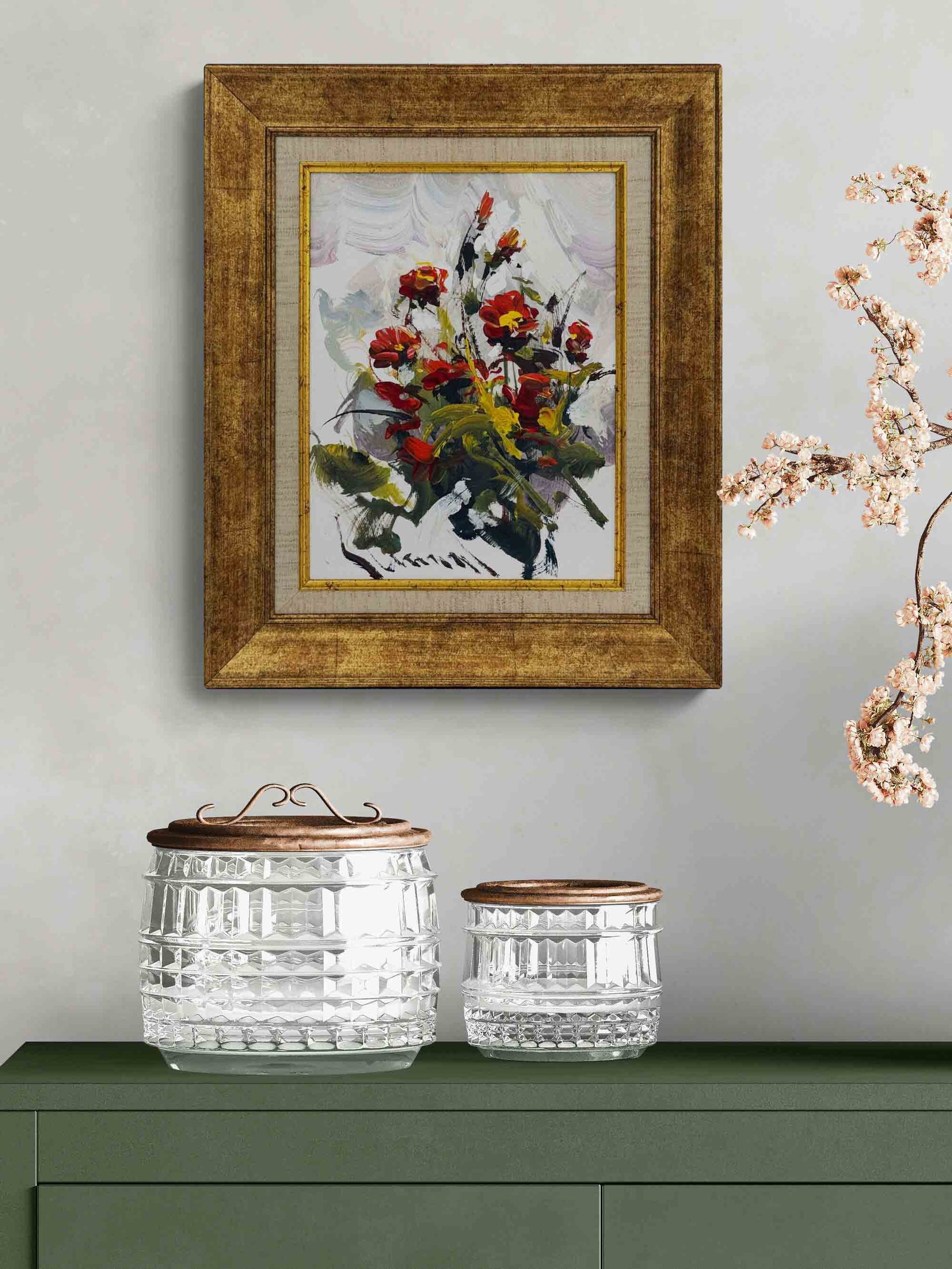 Kırmızı Çiçek Buketi Yağlı Boya Tablosu