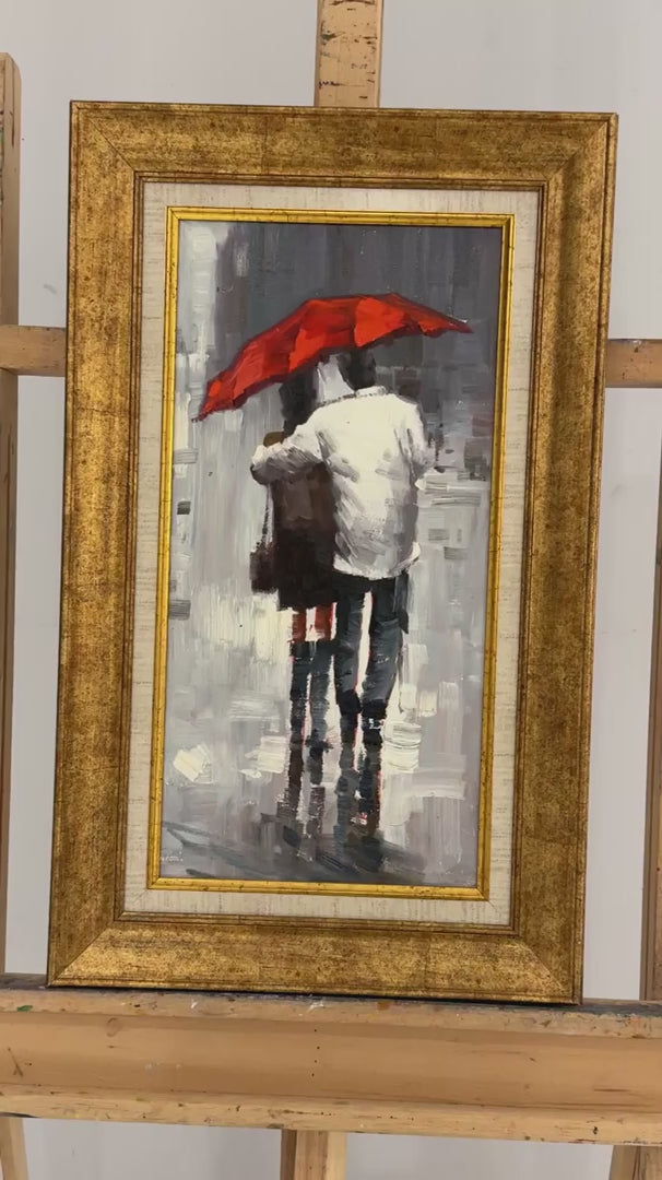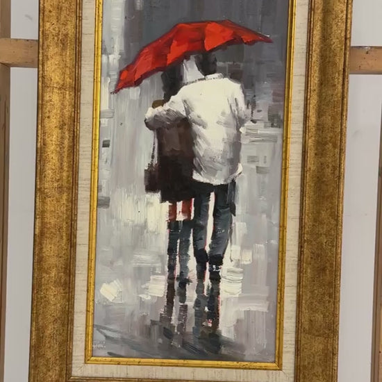 Kırmızı Şemsiyenin Altında Yağlı Boya Tablosu