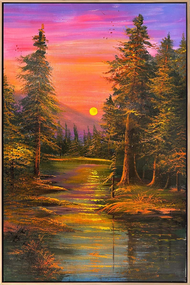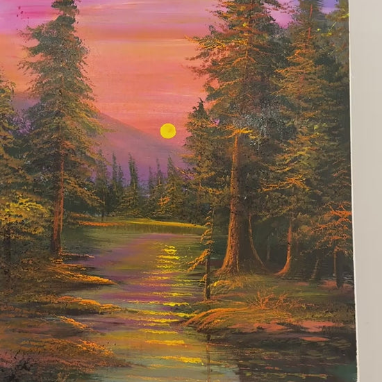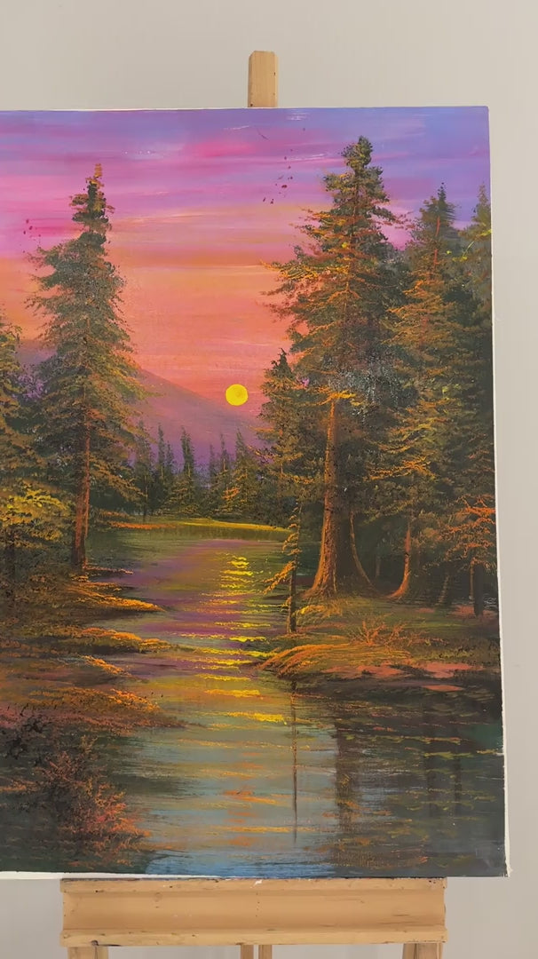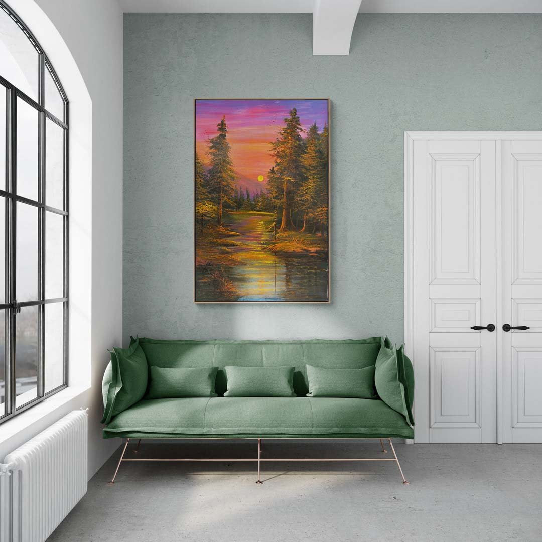 Kırmızı ve Mor Günbatımı Yağlı Boya Tablosu