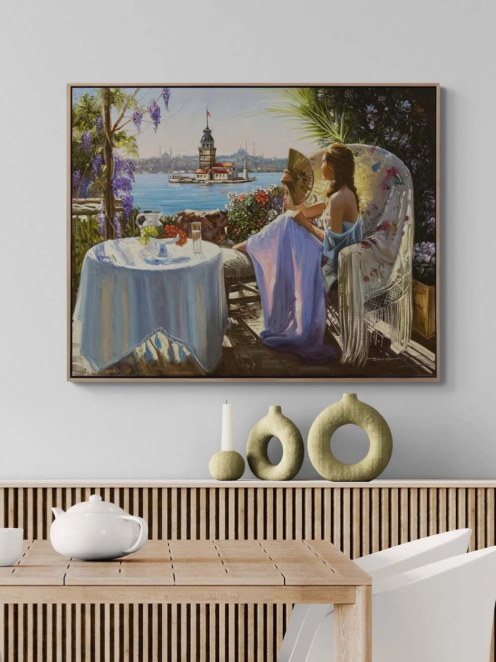 Kız Kulesi Açılan Balkon Yağlı Boya Tablosu