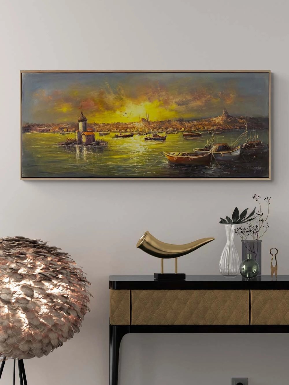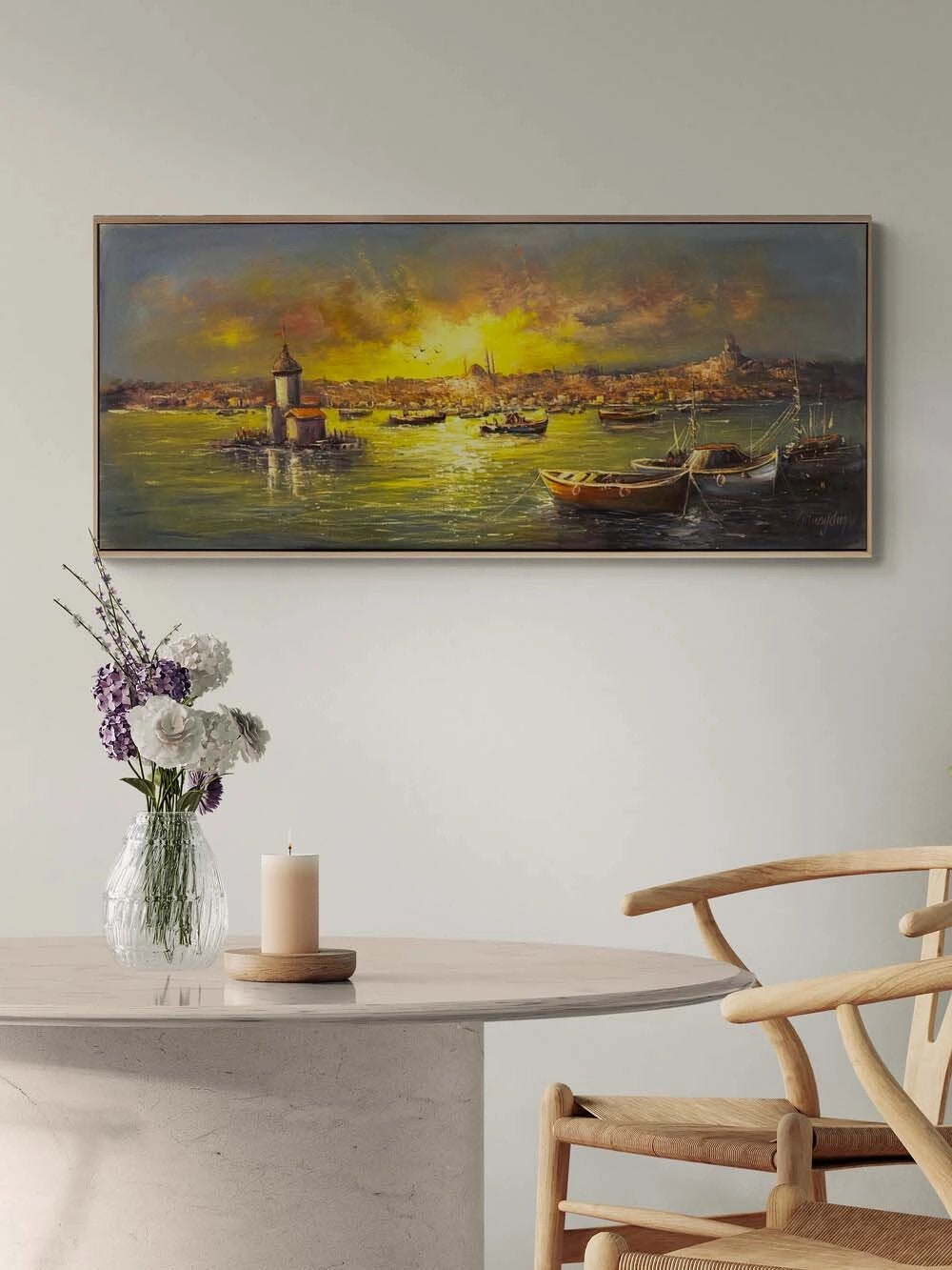 Kız Kulesi Liman Hatırası Yağlı Boya Tablosu